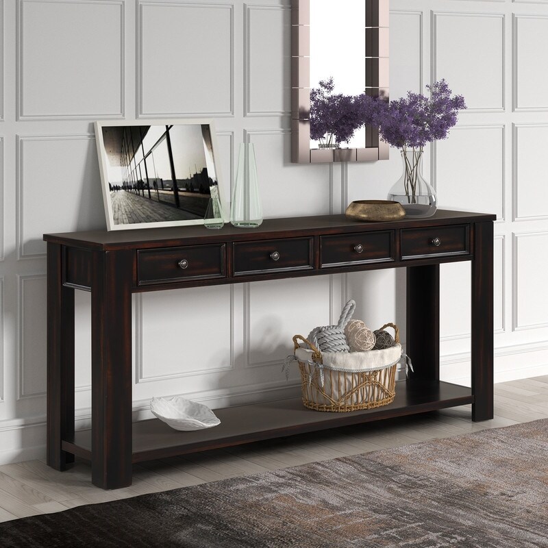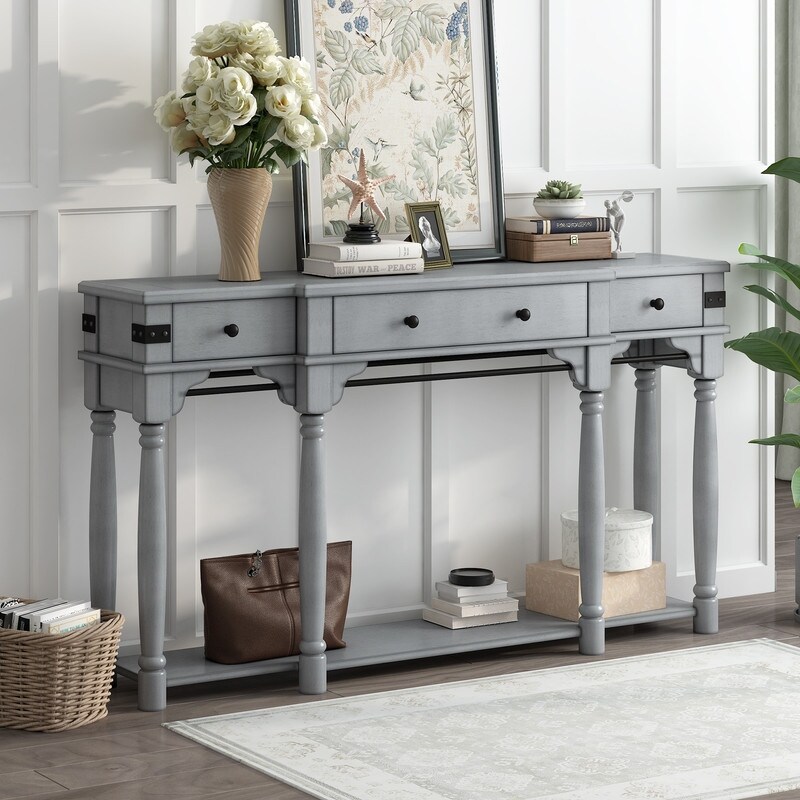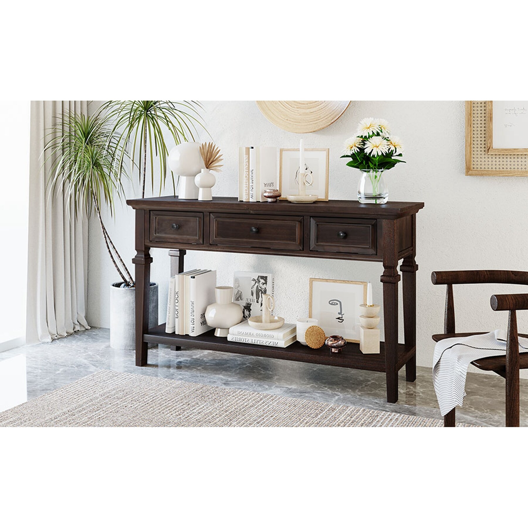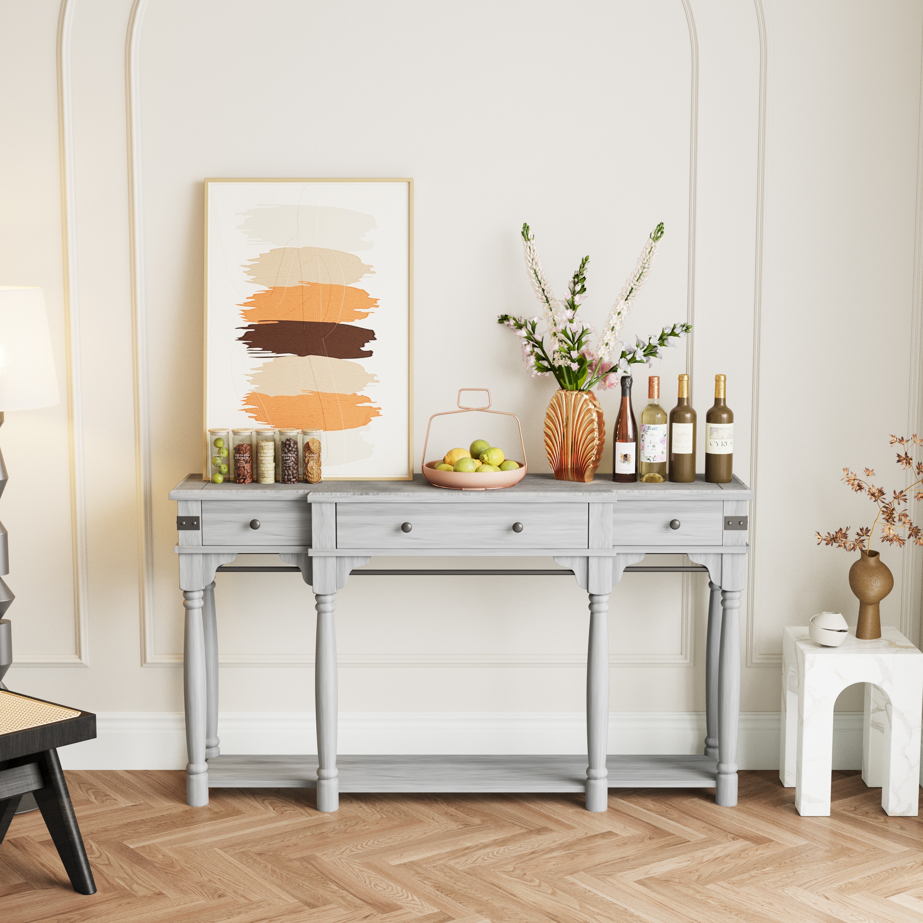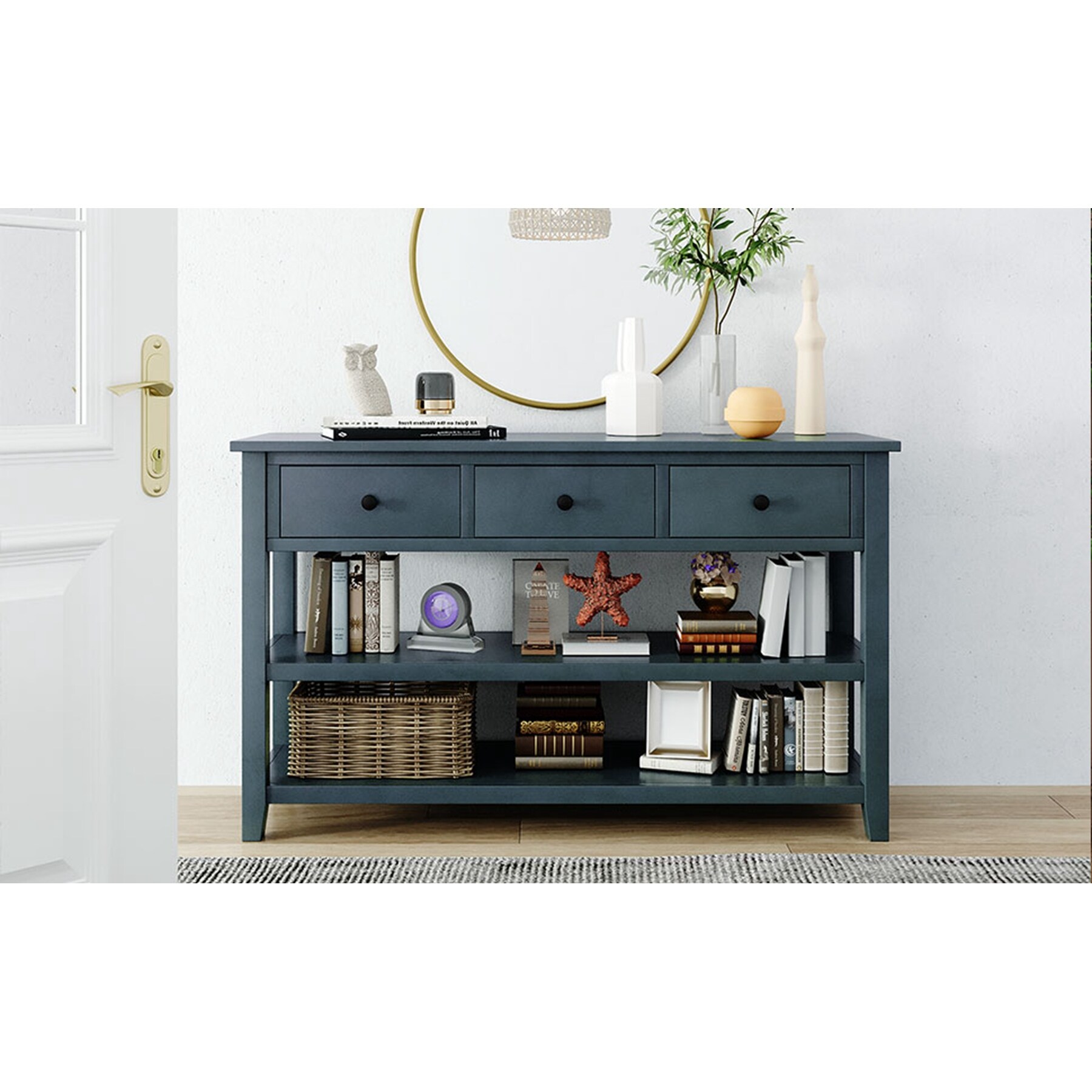 Classic Retro Style Console Table with Three Top Drawers and Open Style Bottom Shelf