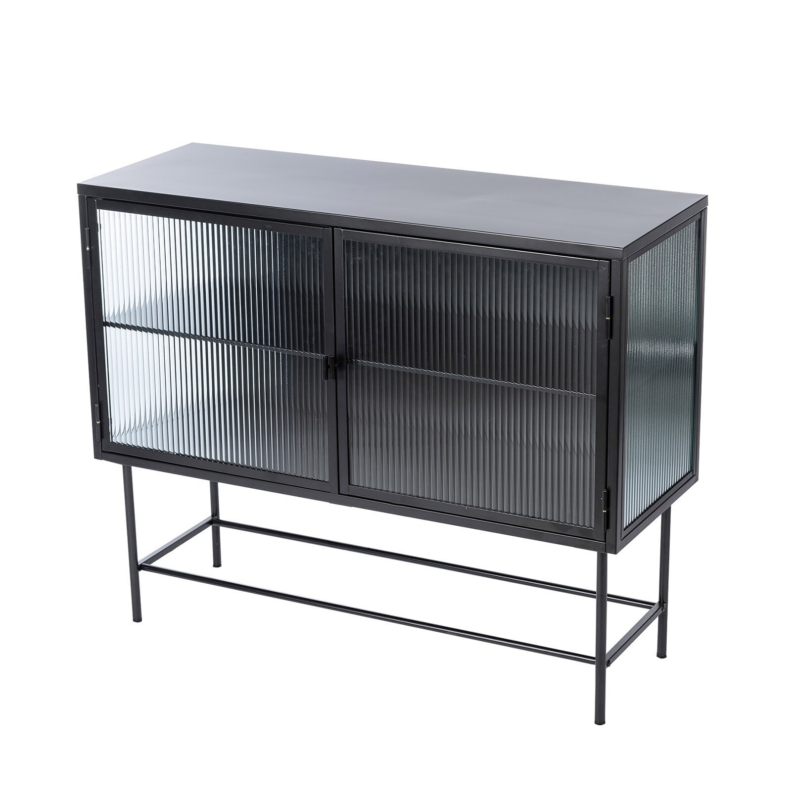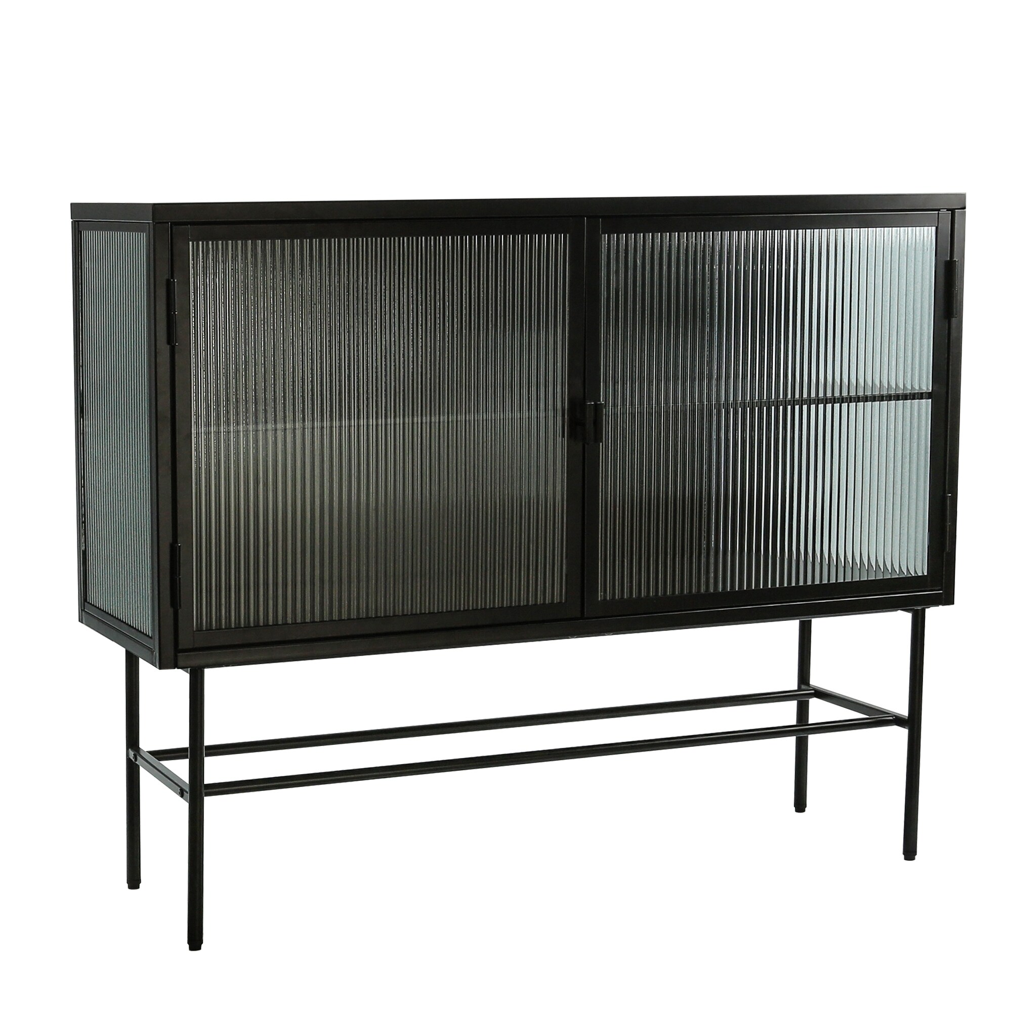 Retro Storage Cabinet, Fluted Glass Buffet Sideboard with Shelves and Doors, Metal Accent Console Table, Entertainment Center