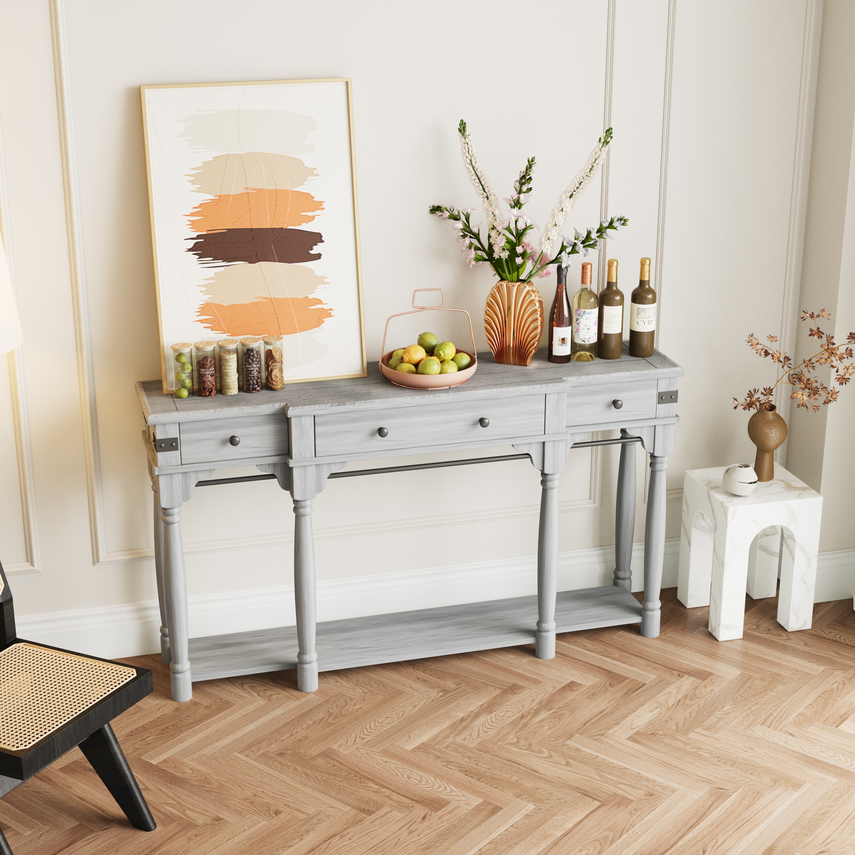 Console Table, Mediterranean Retro 60" Entryway Table with Storage Drawers and Bottom Shelf for Entryway, Living Room, Hallway