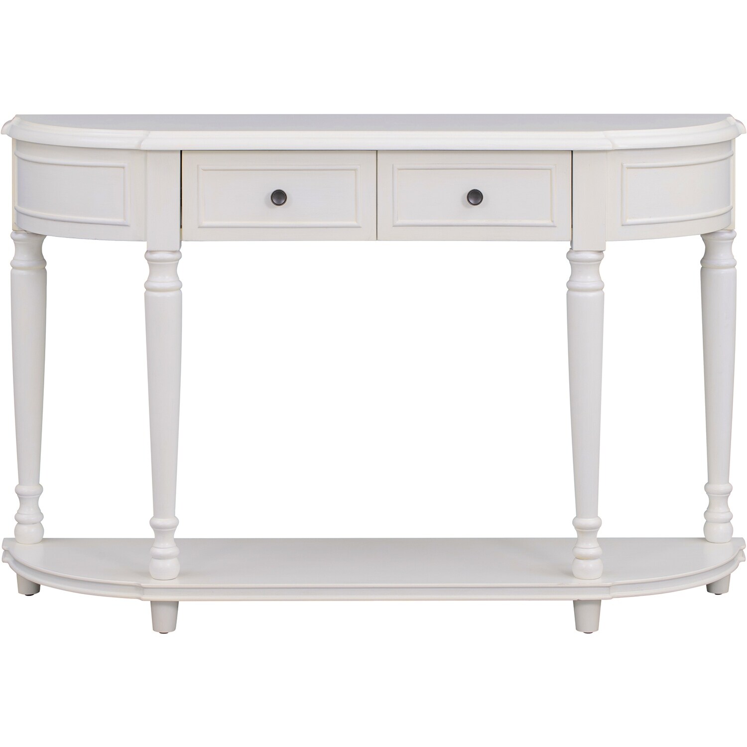 Retro Circular Curved Design Console Table with Shelf and Two Drawers