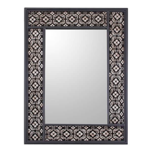 Handmade Silver Blossoms Reverse Painted Glass Floral Mirror (Peru)