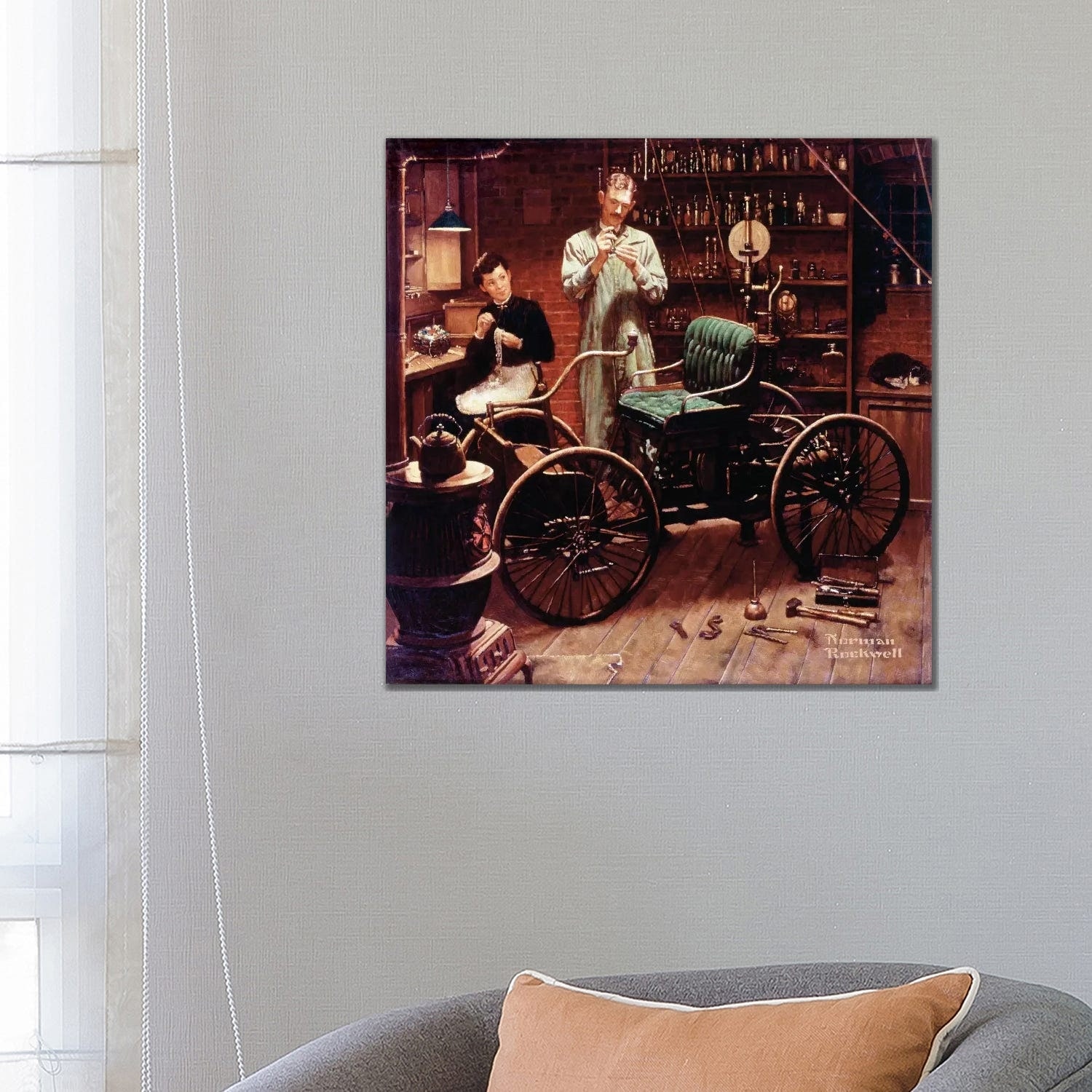iCanvas "The Revolution that Started in a Shed at Night" by Norman Rockwell Framed Canvas Print
