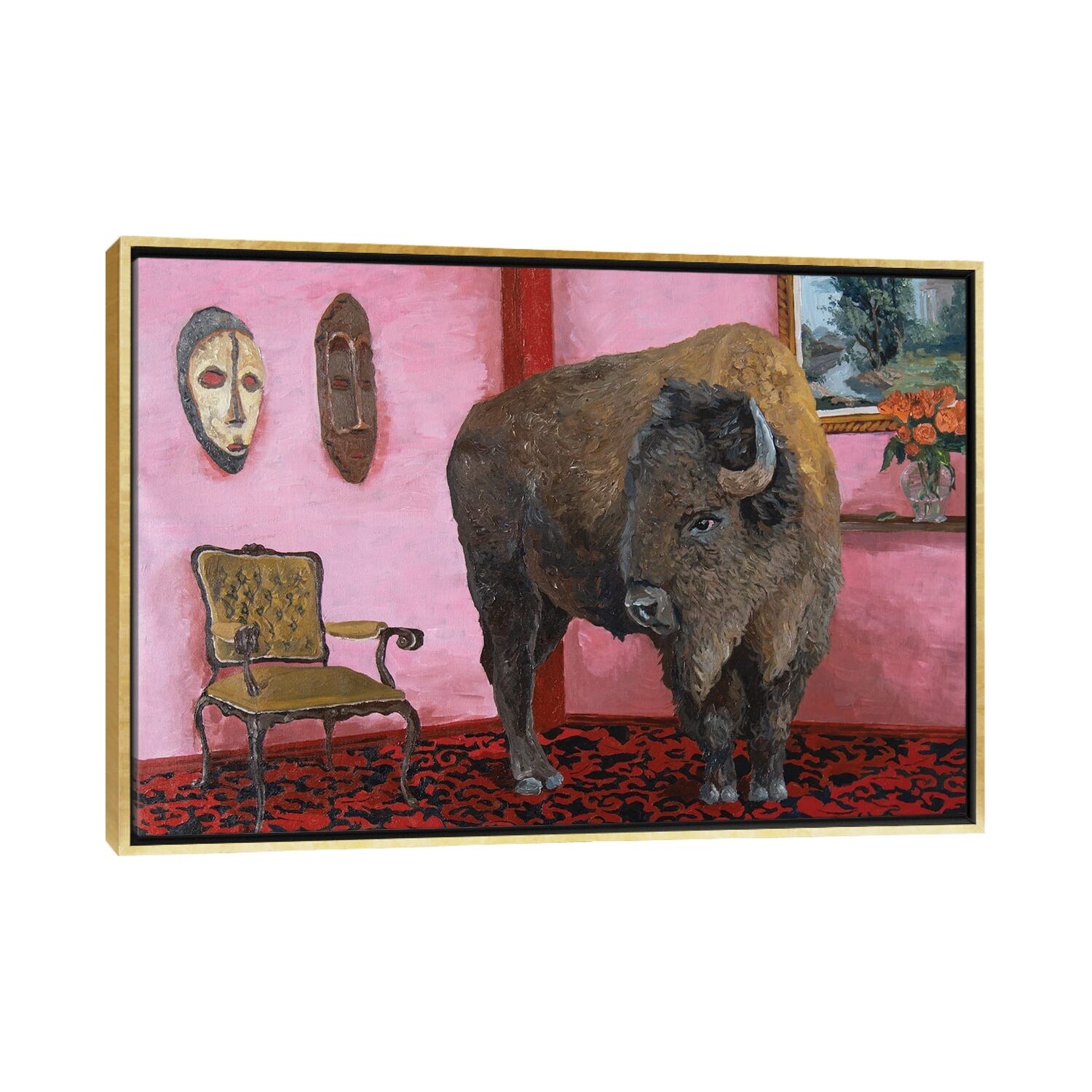 iCanvas "Bison On Red" by Artur Rios Framed|White - 26x40