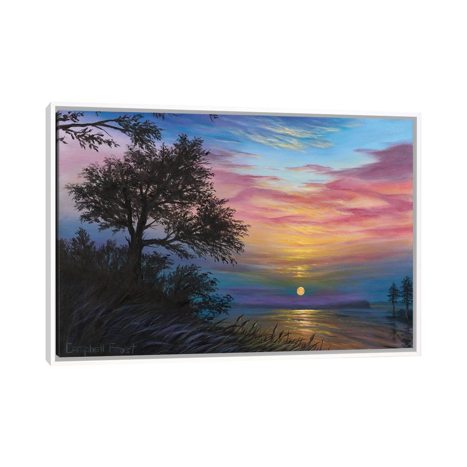 iCanvas "River Moon" by Campbell Frost Framed|White - 18x26