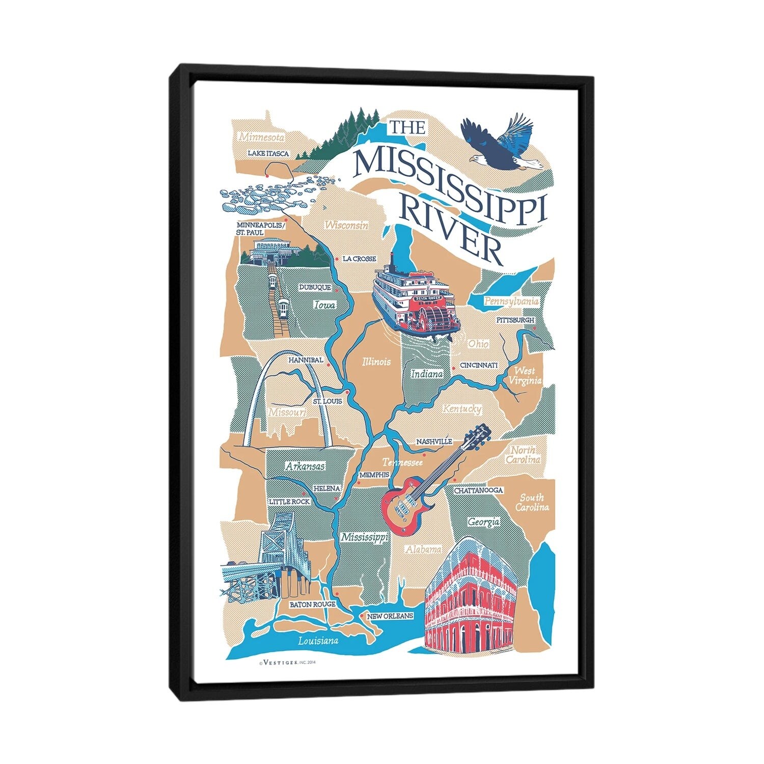 iCanvas "Mississippi River" by Vestiges Framed|Black - 48x32