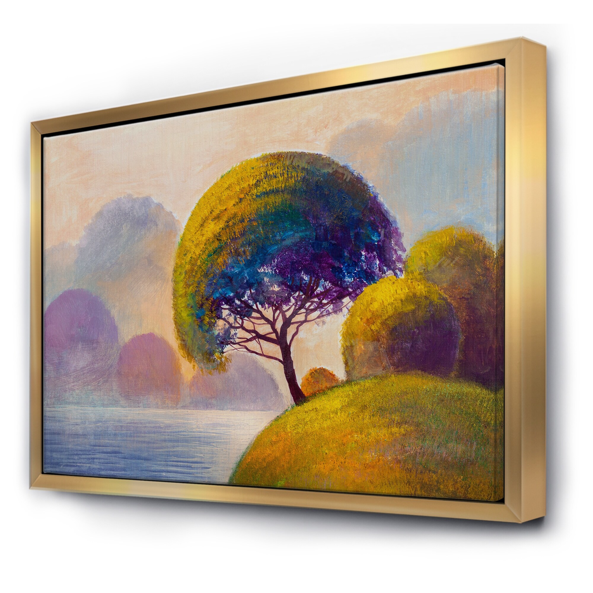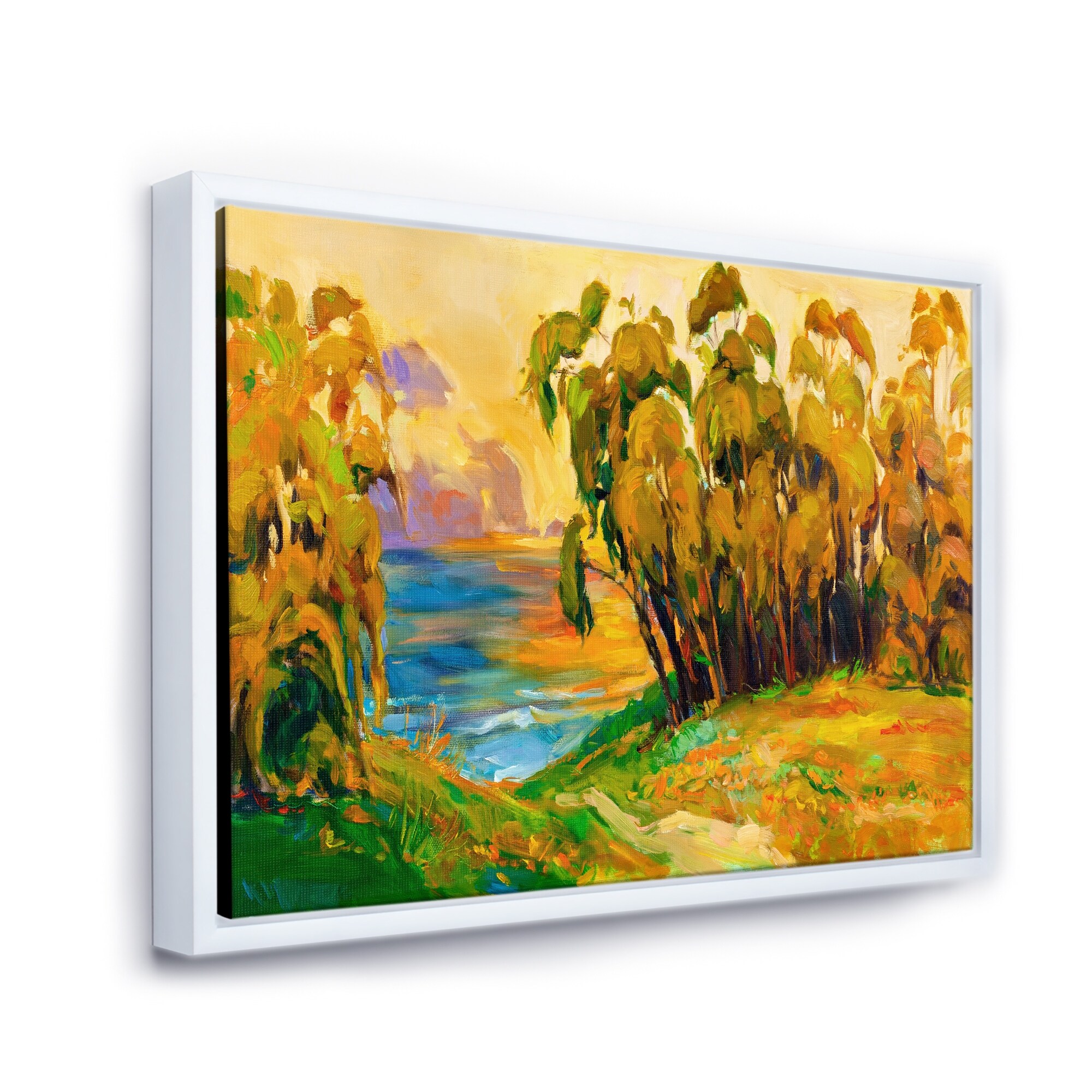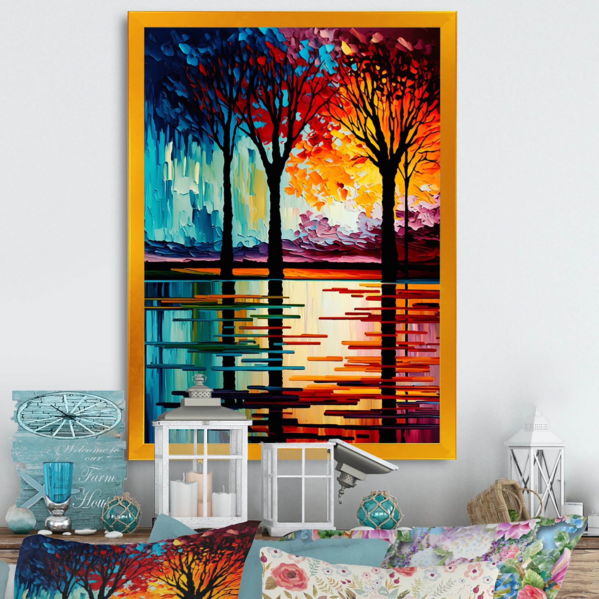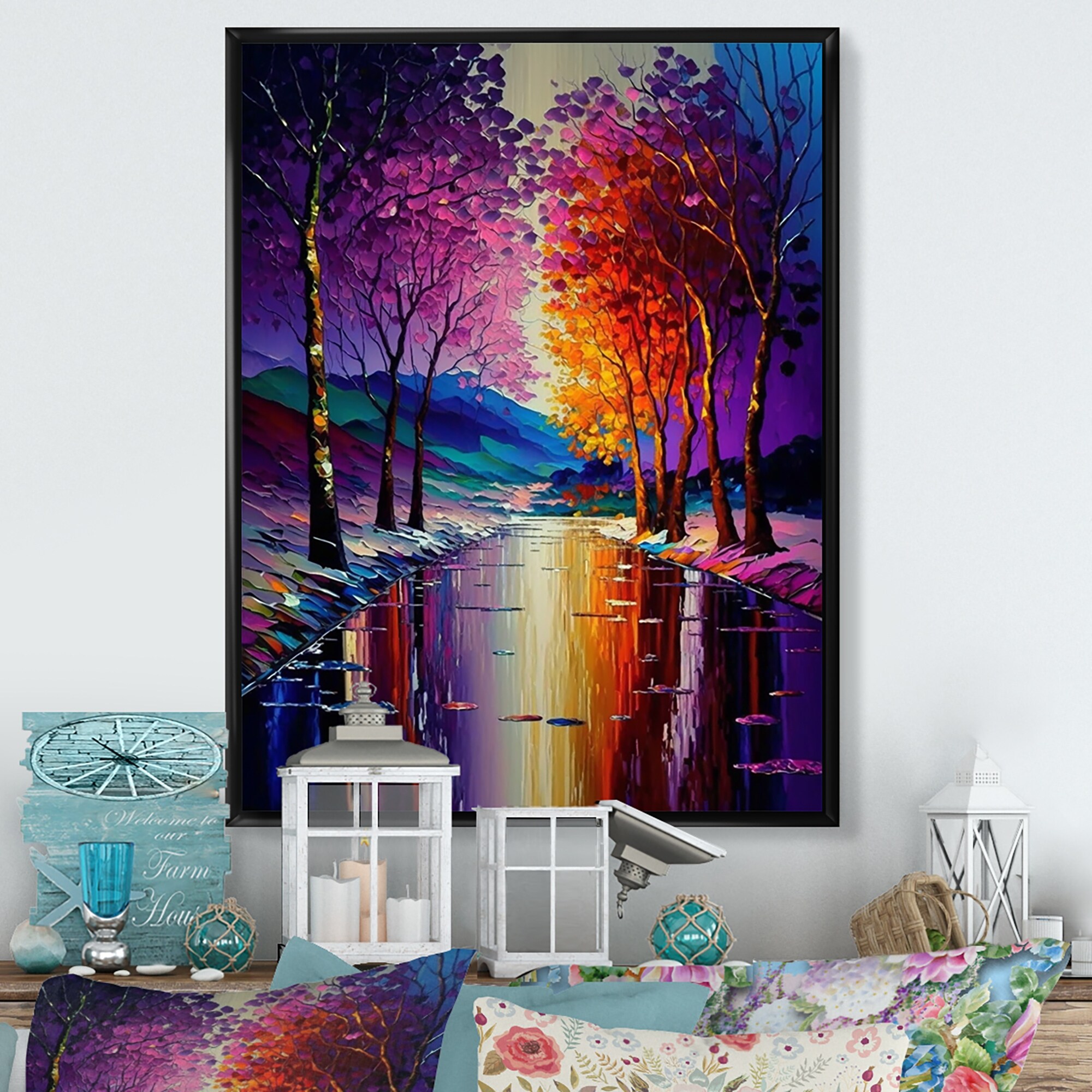 Designart "Colorful Trees At Sunset By the Riverside I" Landscape Forest Framed Canvas Wall Art Print