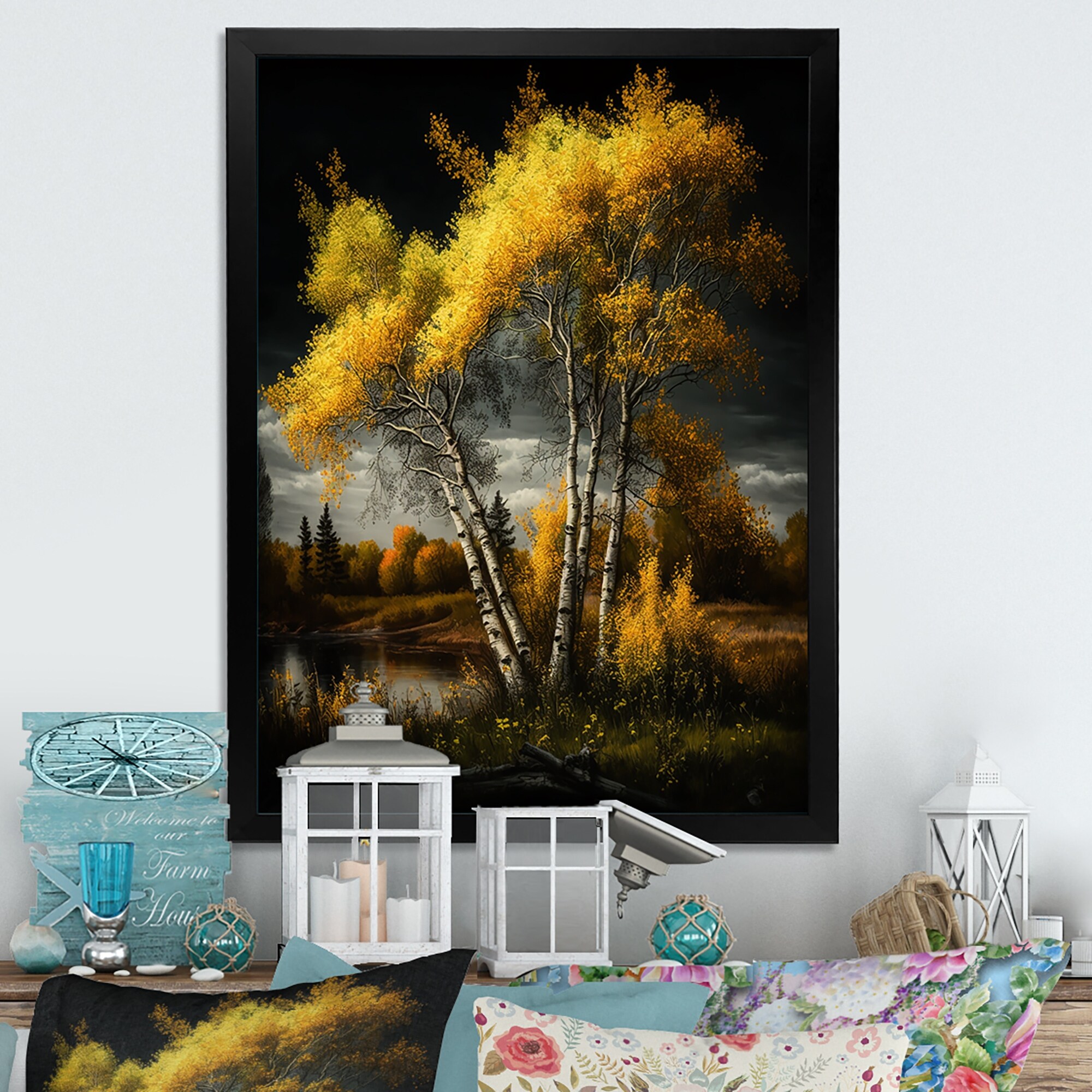 Designart "Yellow Birches By the Riverside II" Landscape Forest Framed Art Print
