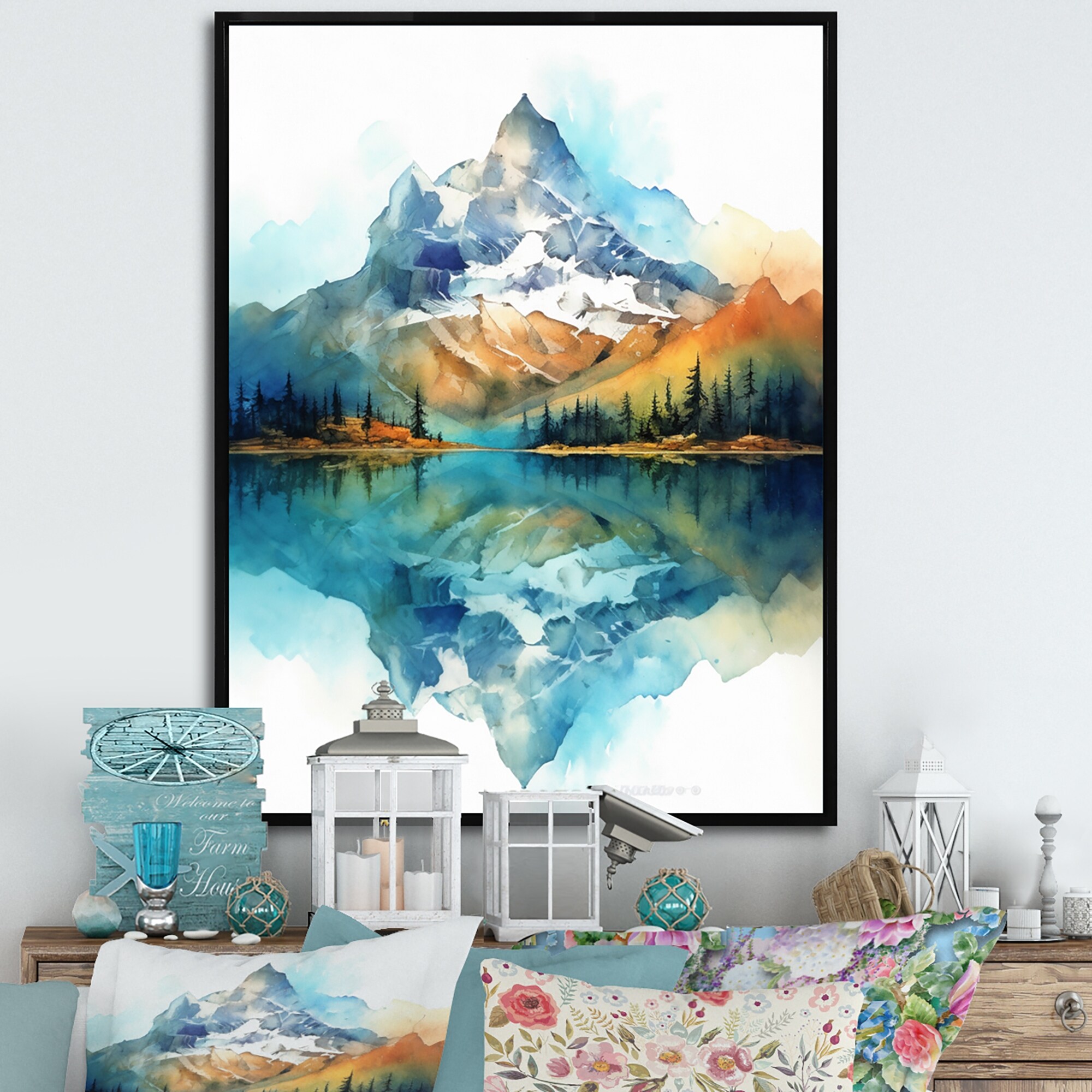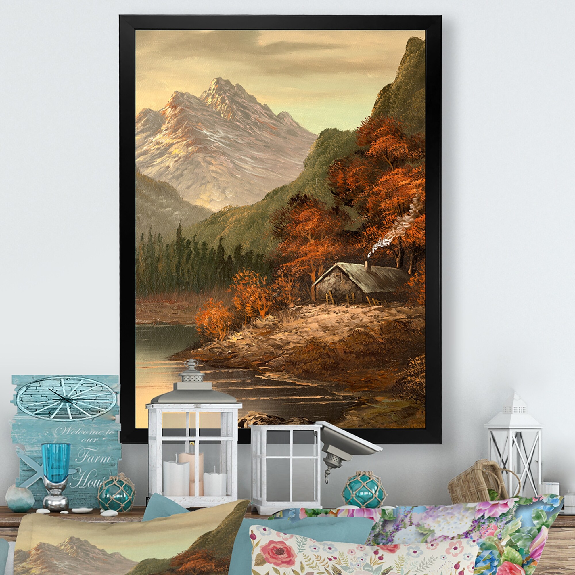 Designart "Mountain Viewed From the Riverside" Traditional Framed artwork