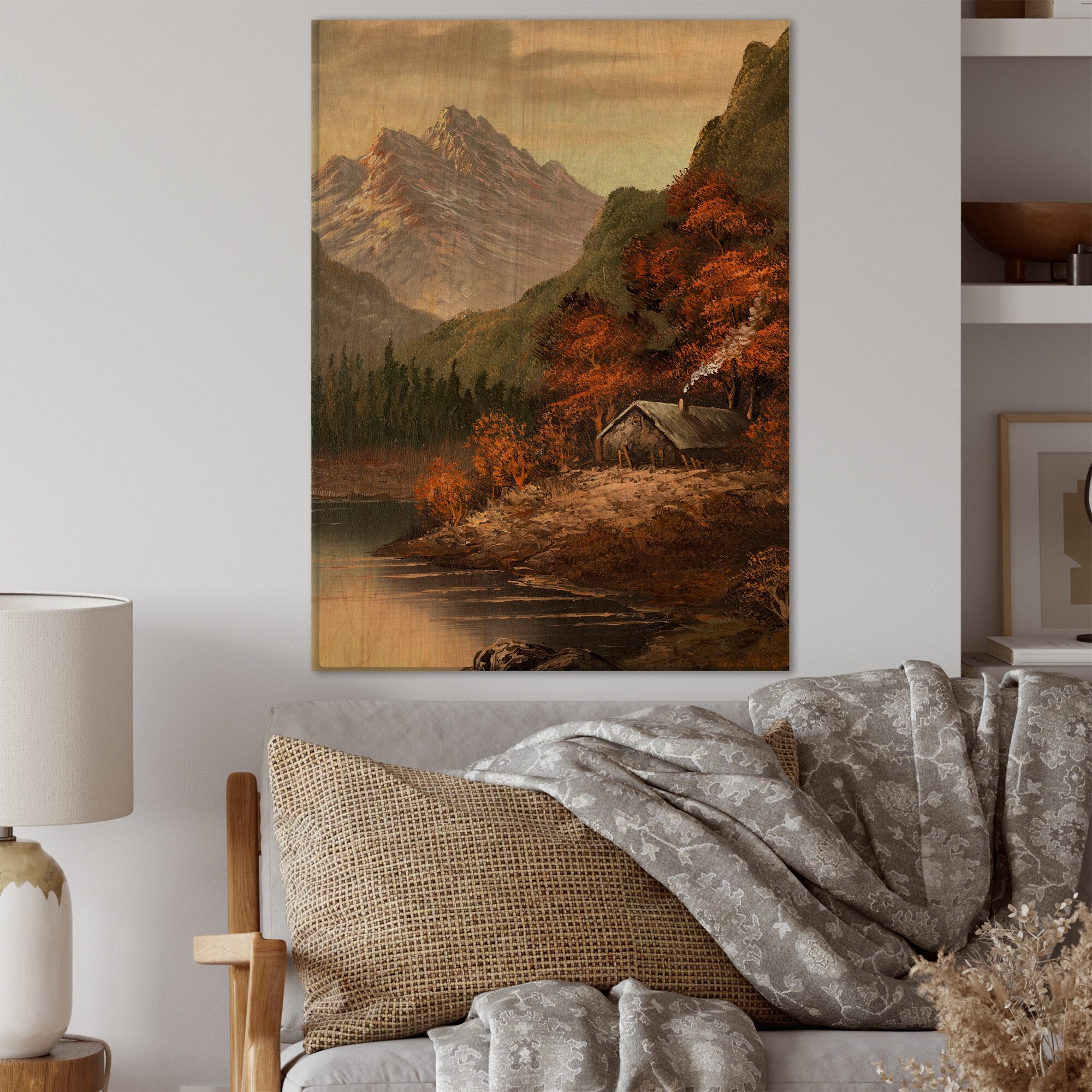 Designart 'Mountain Viewed From the Riverside' Traditional Wood Wall Art Décor - Natural Pine Wood