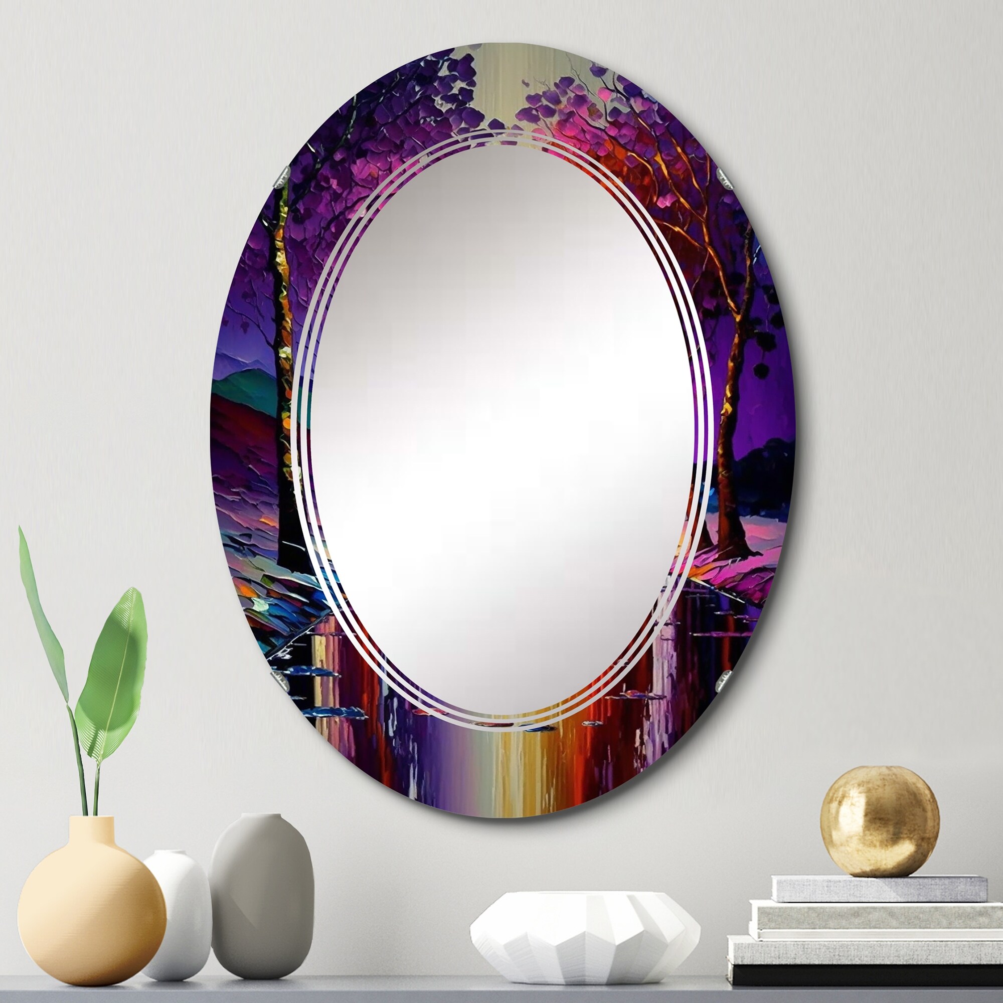 Designart 'Colorful Trees At Sunset By the Riverside I' Printed Landscape Forest Wall Mirror