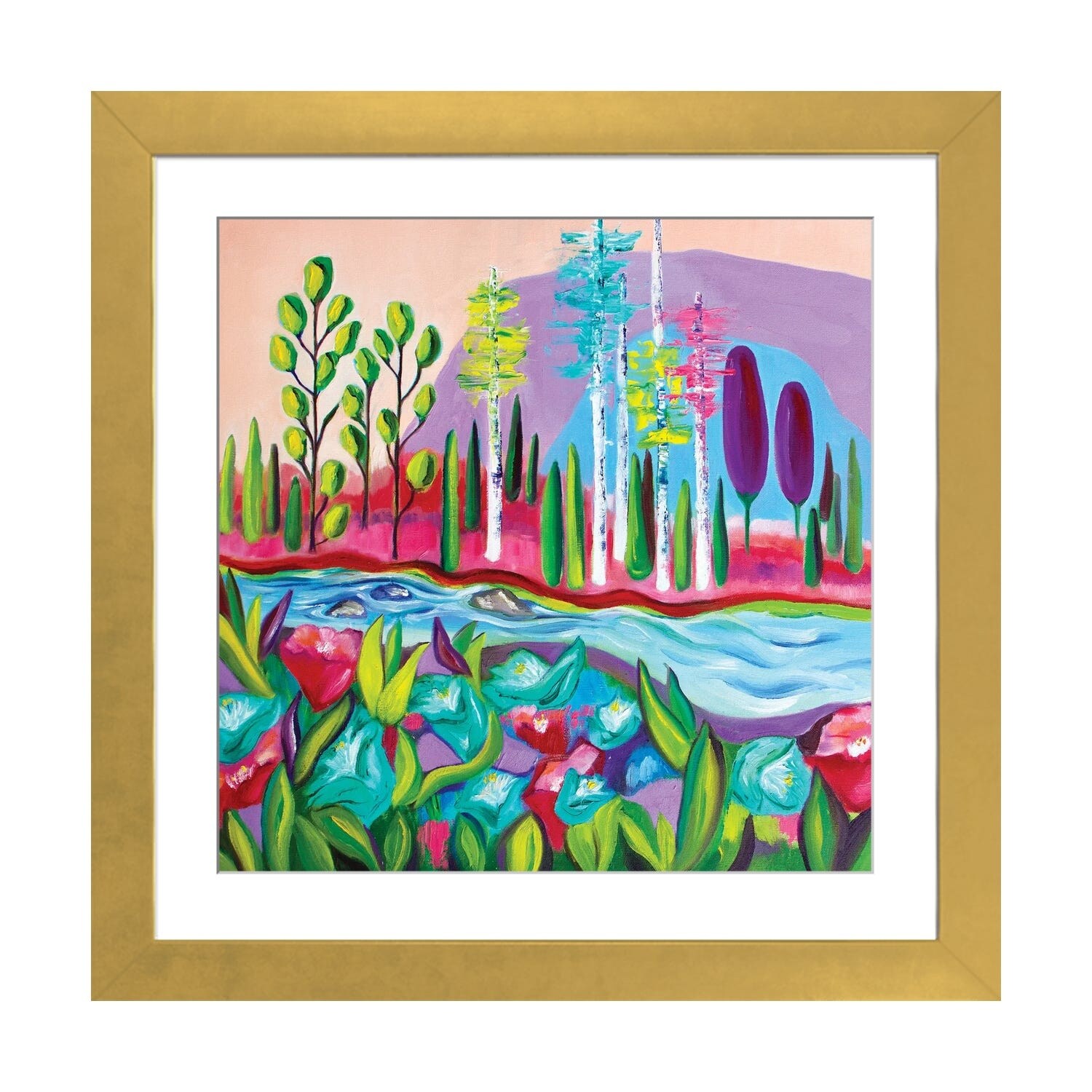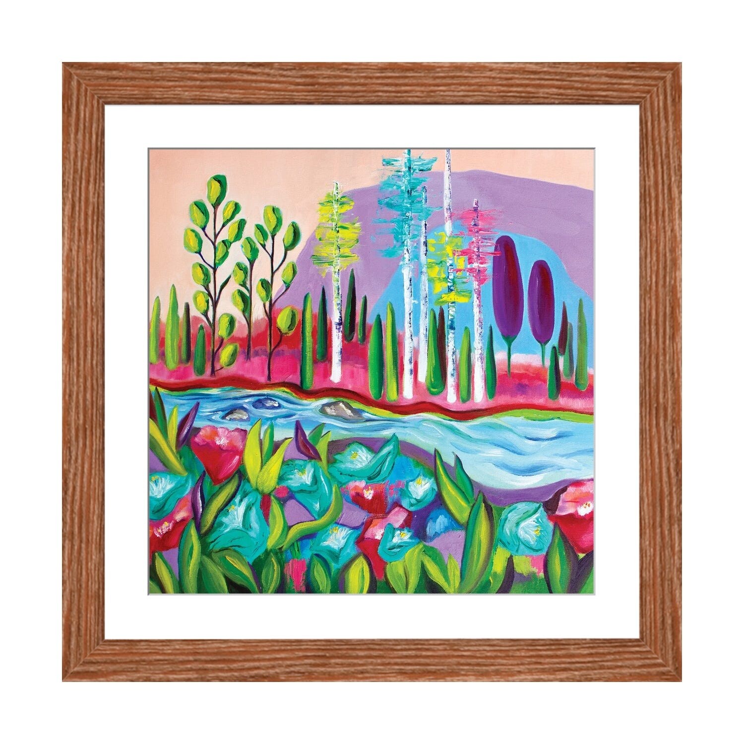 Designart "Colorful Summer Forest By Idyllic Riverside" Farmhouse Framed Canvas Wall Art Print