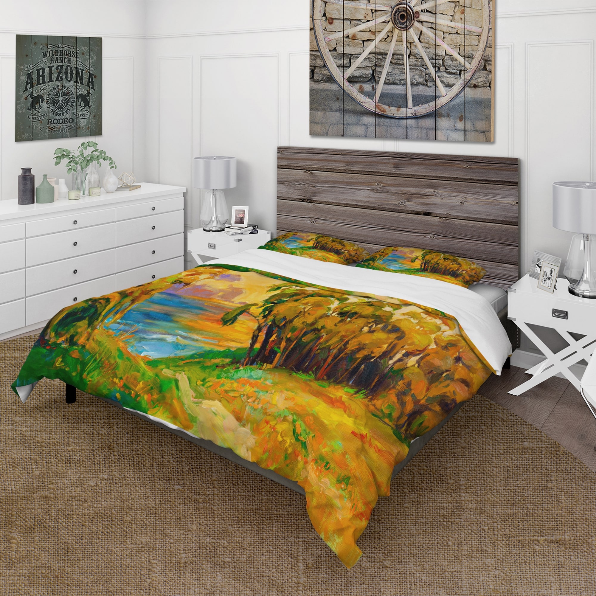 Designart 'Green Trees By the Riverside During Evenign Glow' Traditional Duvet Cover Set