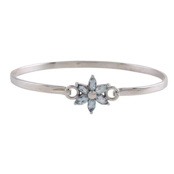 Handmade Sterling Silver 'Marquise Flower' Blue Topaz Bracelet (India)