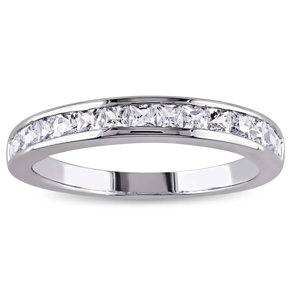 Miadora Sterling Silver Created White Sapphire Eternity Ring