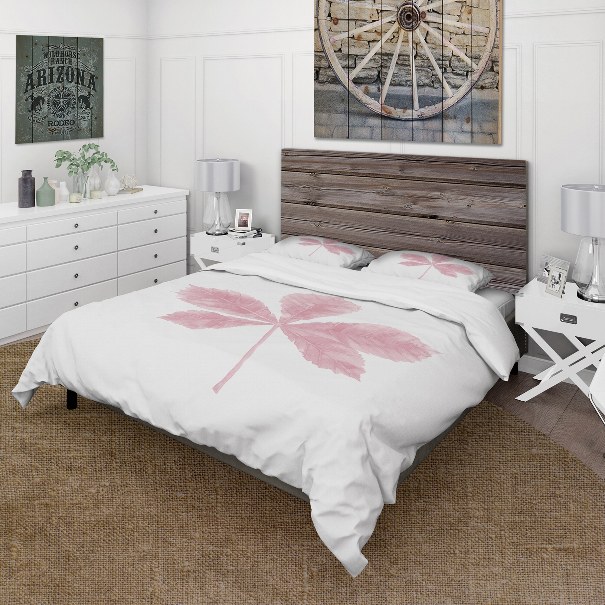 Designart 'Single Pink Tree Leaf' Traditional Duvet Cover Set