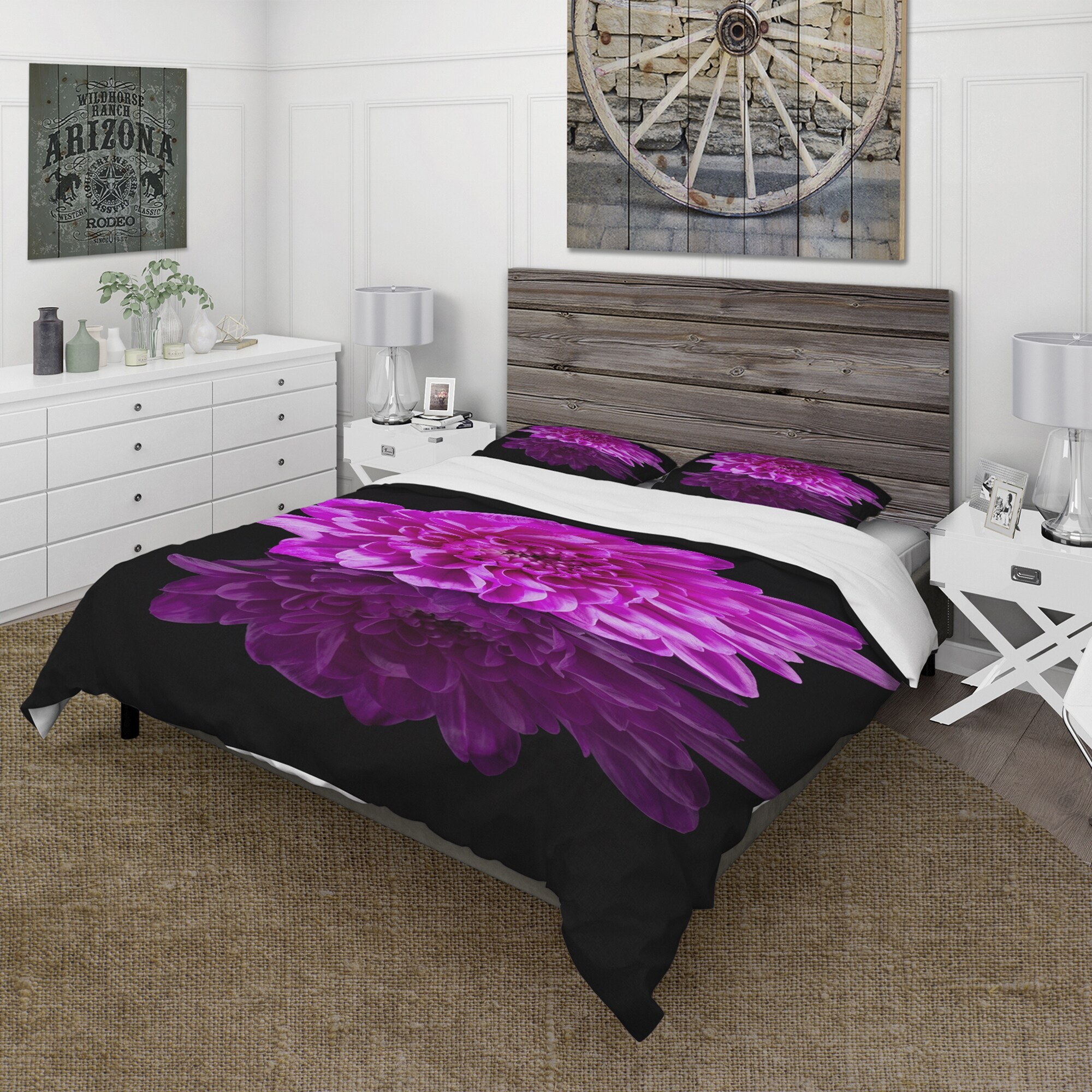 Designart 'Single Chrysanthemum Flower on Black Reflection' Traditional Duvet Cover Set