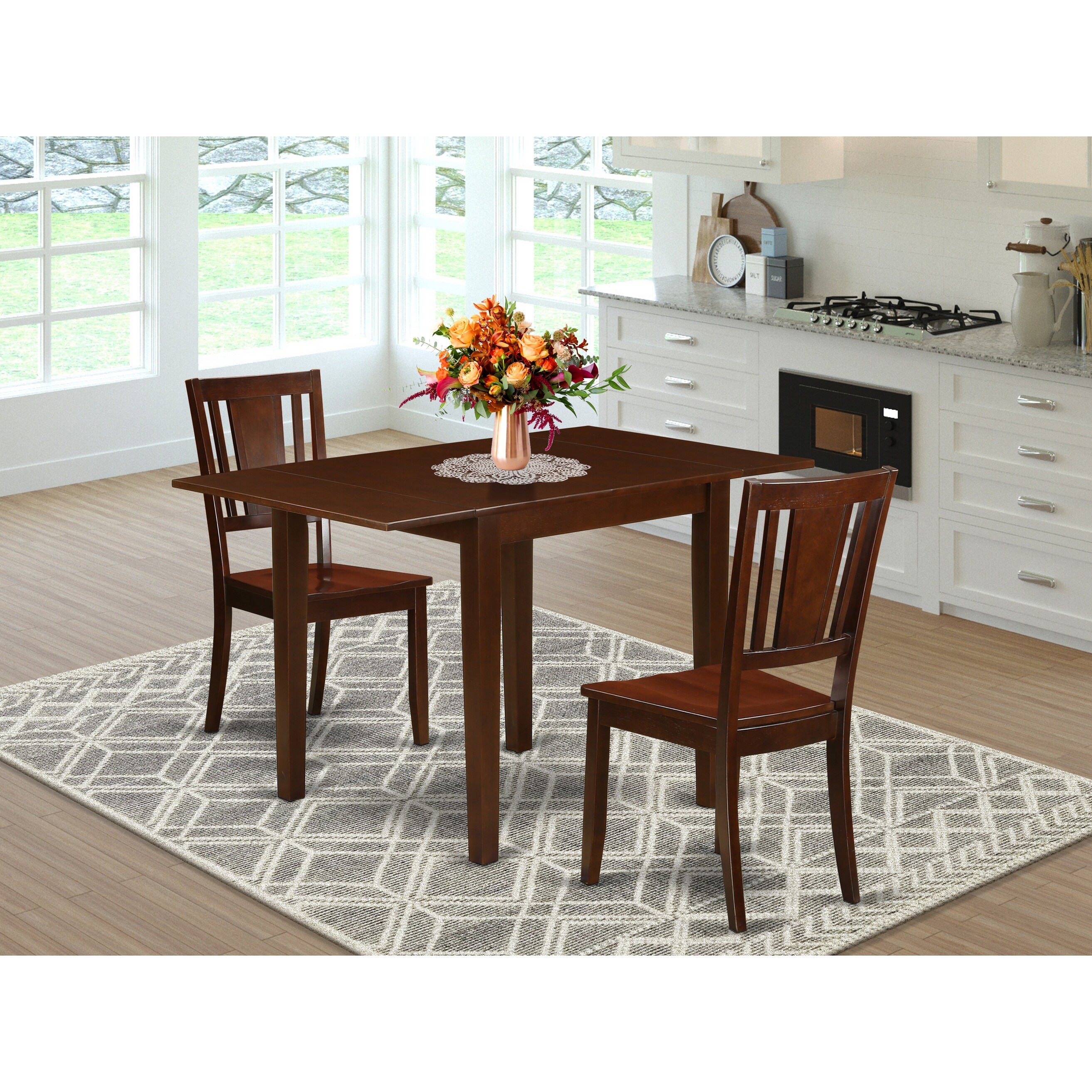 Kitchen Table Set- Dining Chairs and Slatted Chair Back - Dropleaf Kitchen Dining Table - Mahogany Finish (Pieces Options)