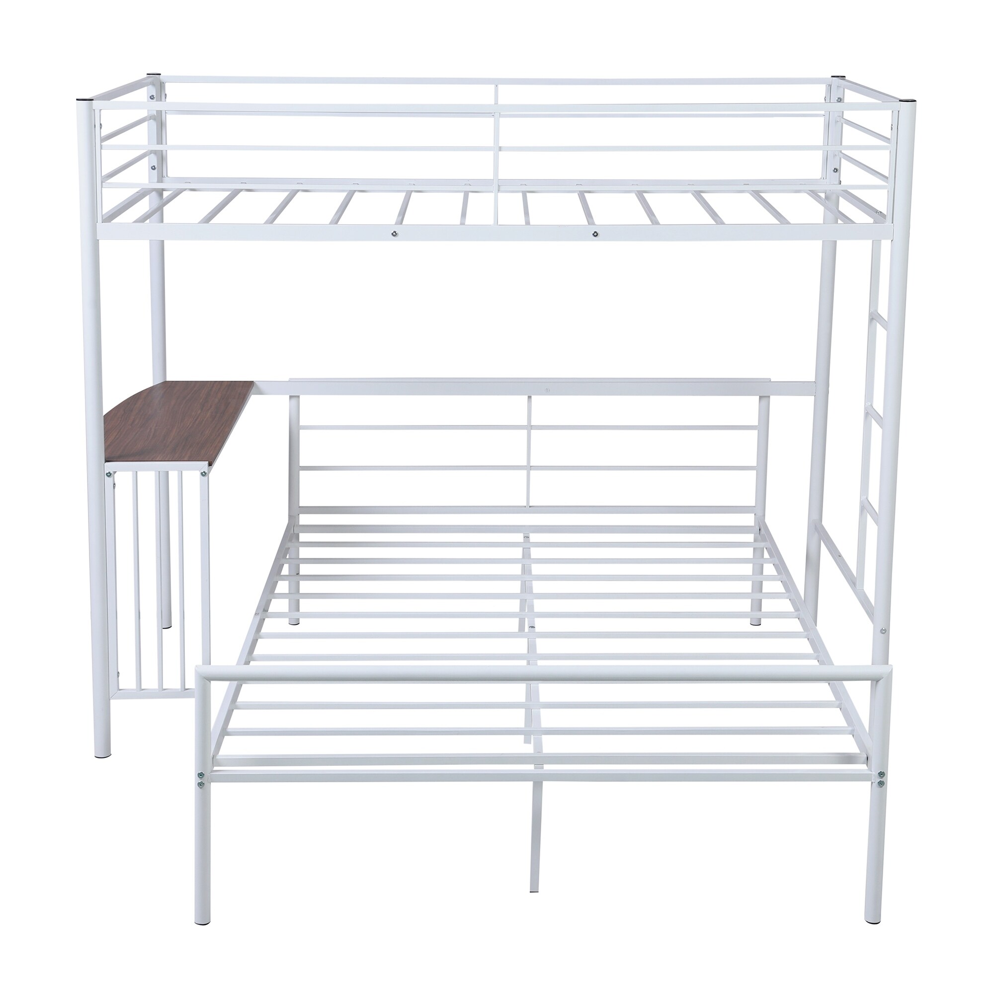 Twin Over Full Metal Bunk Bed with Desk, Ladder and Quality Slats