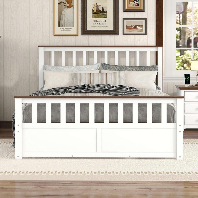 Pine Wood Slatted Platform Headboard Footboard Full Size Bed