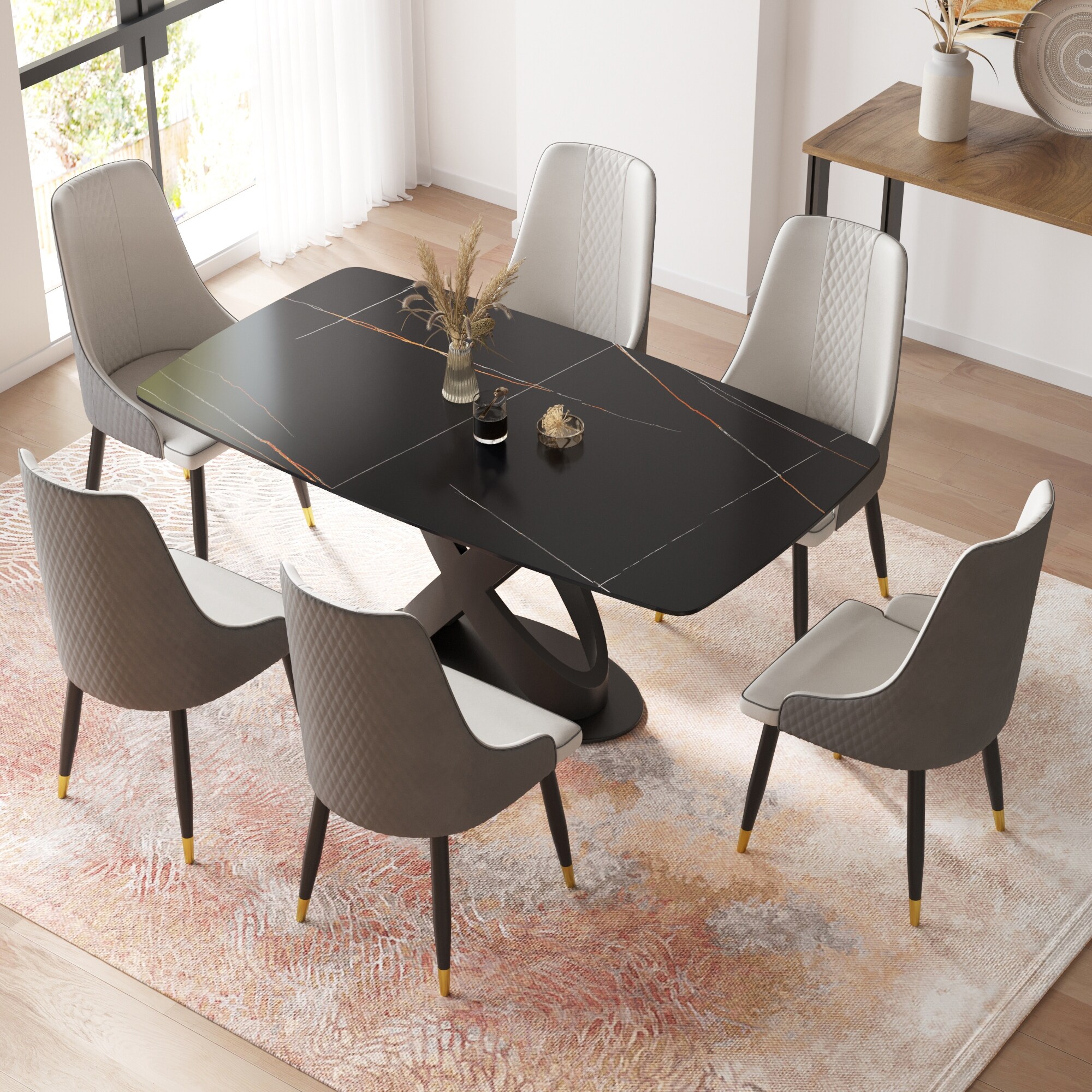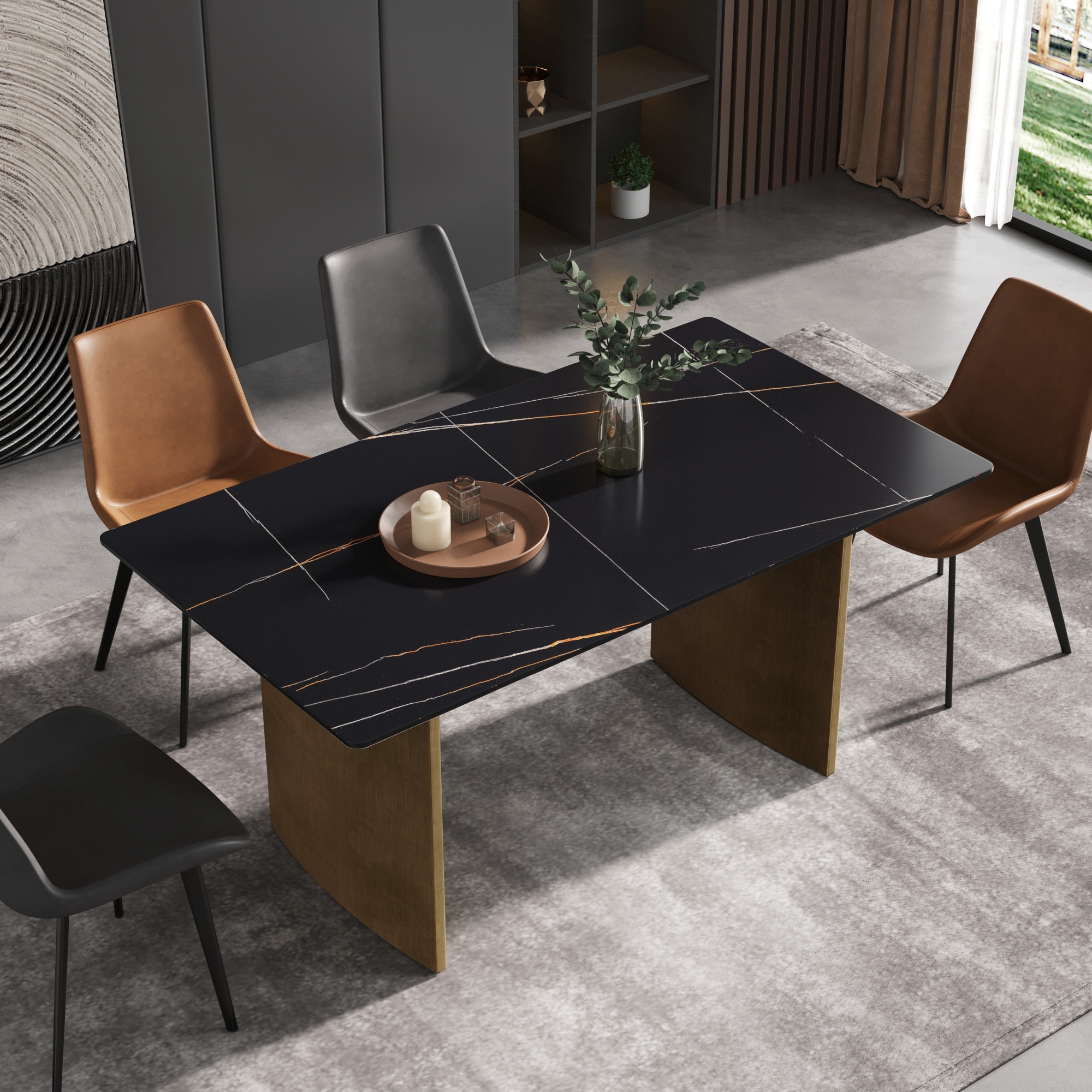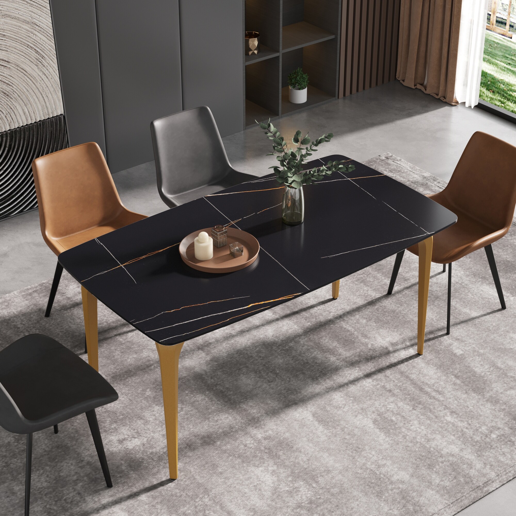 Luxury Retro Marble Dining Table, Sintered Stone Table Top Slate Dining Table With Metal Legs