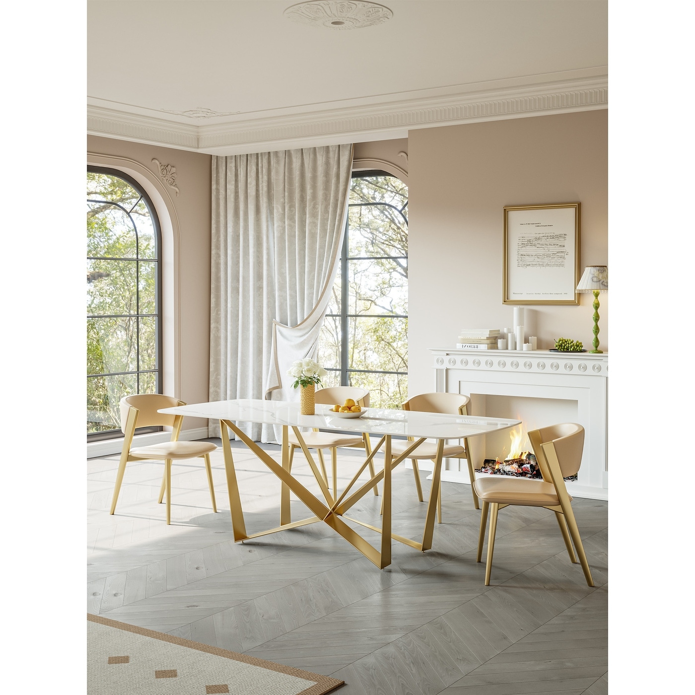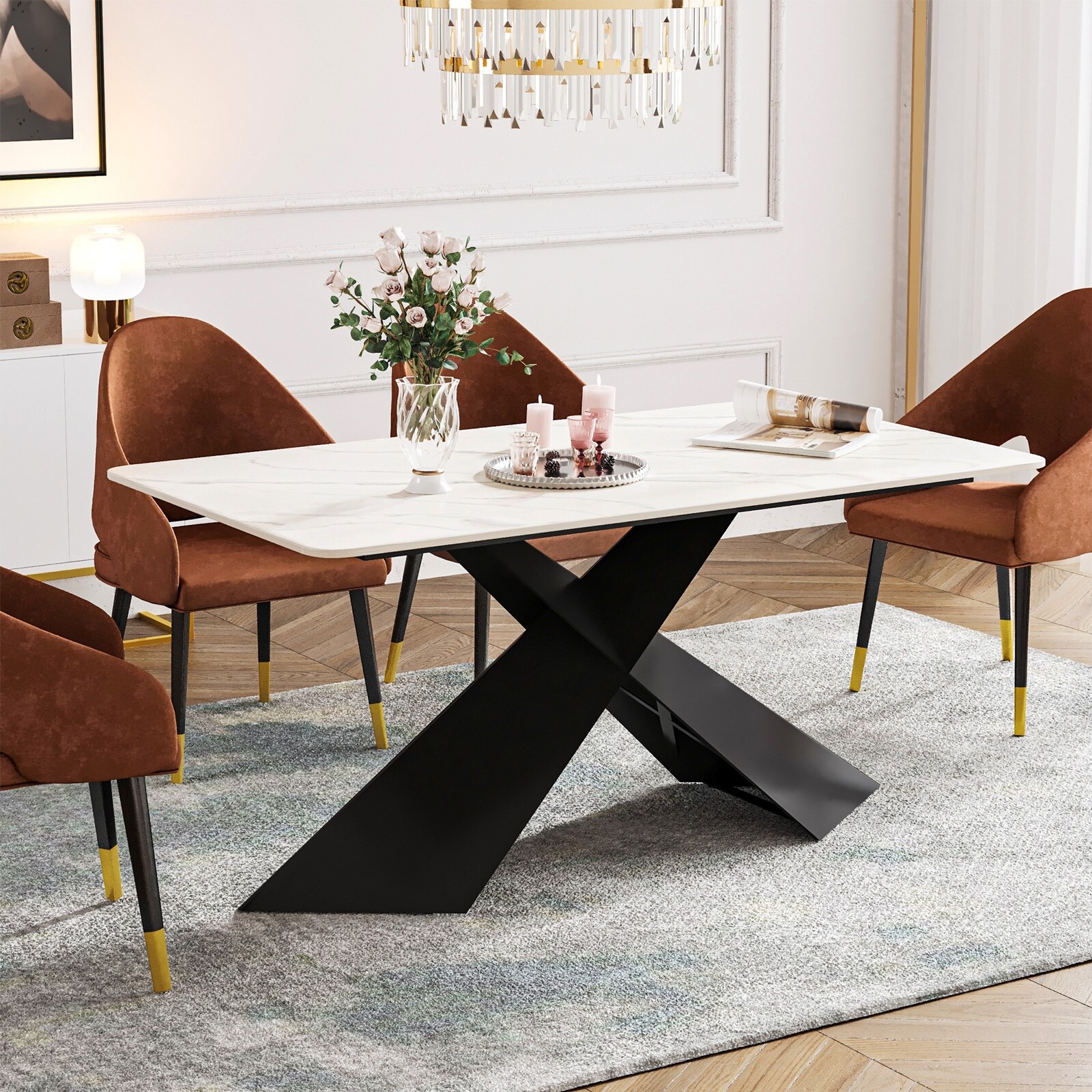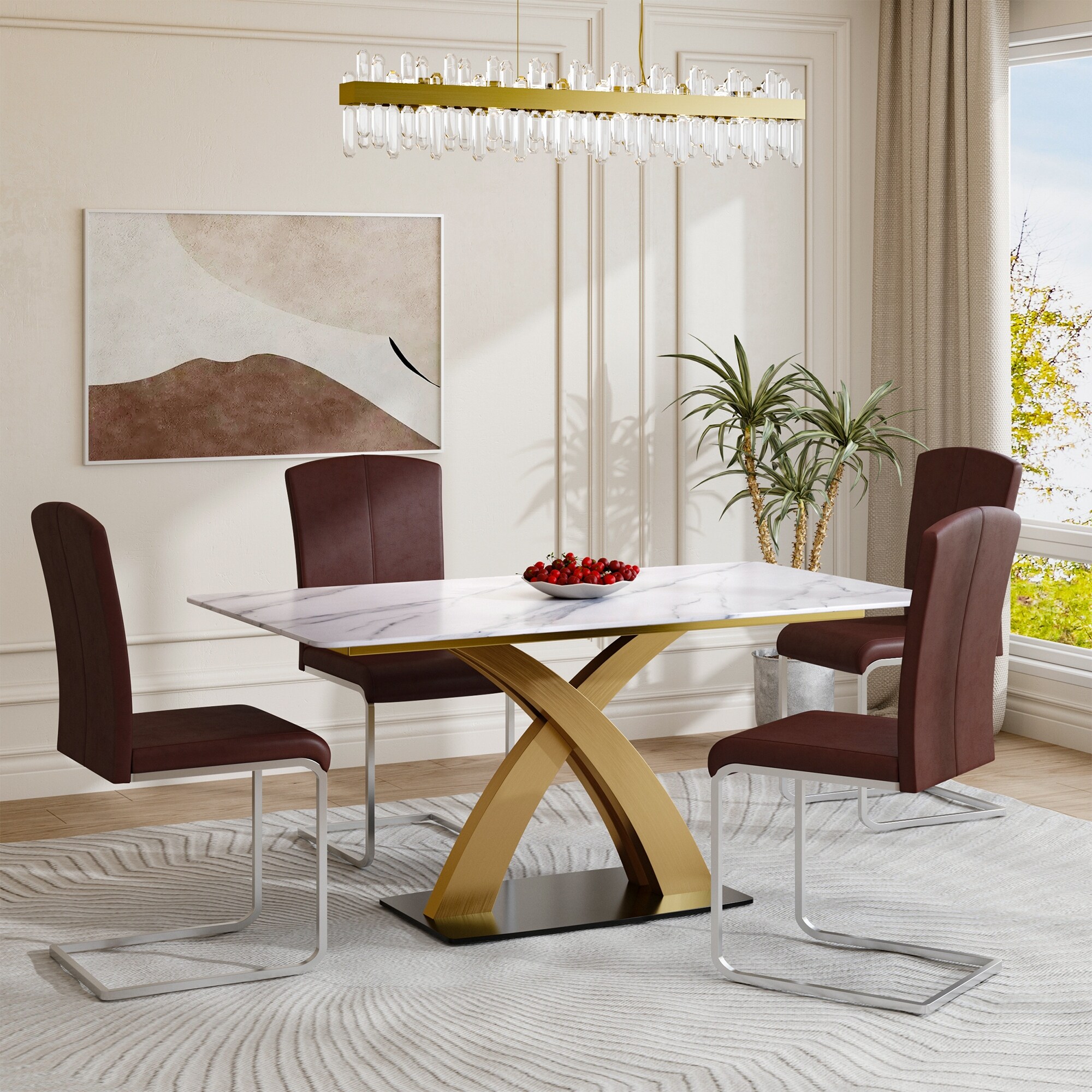 Luxury Retro Marble Dining Table, Sintered Stone Table Top Slate Dining Table With Metal Legs
