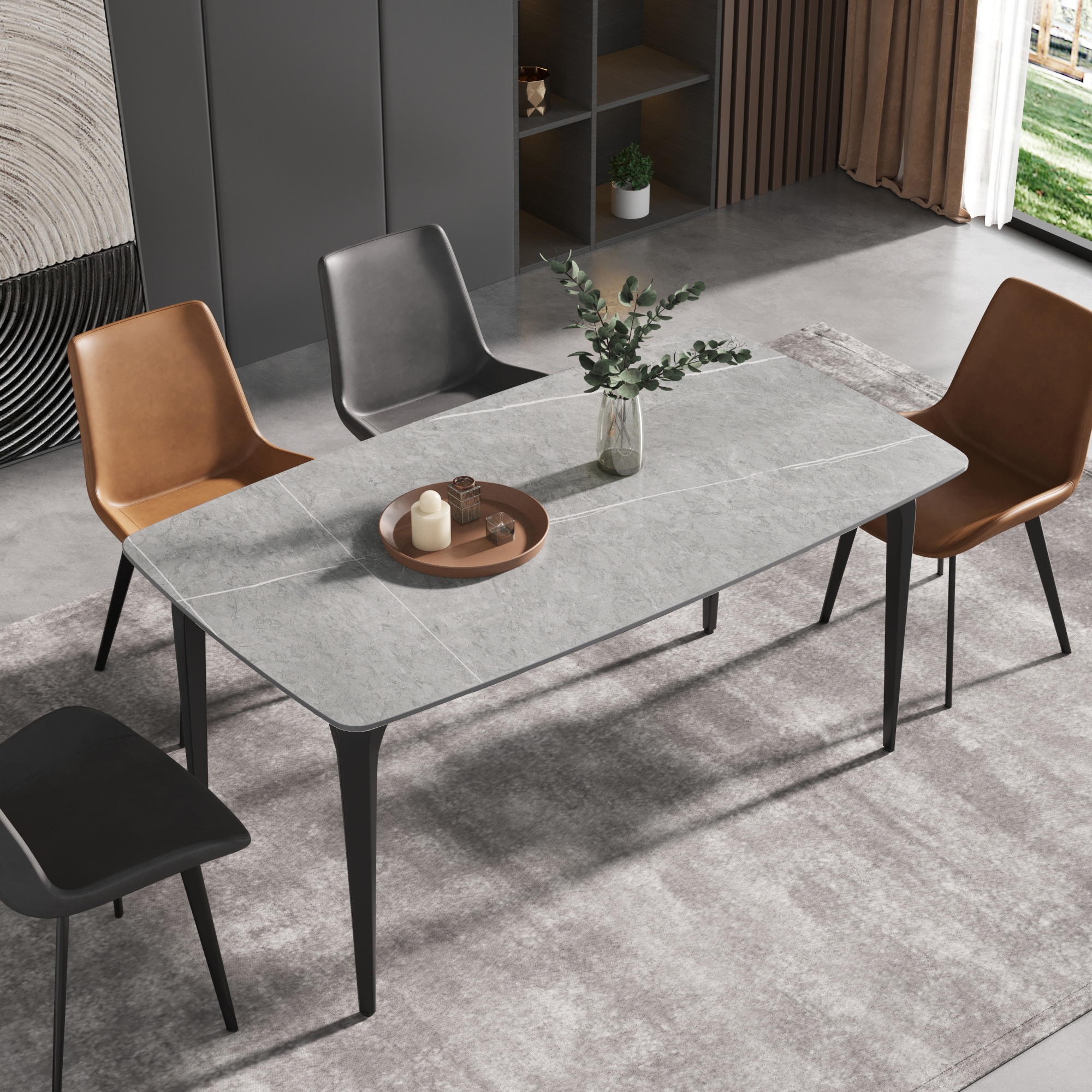 Modern Slate Gley Dining Table, Rectangular Sintered Stone Top and Metal Legs.