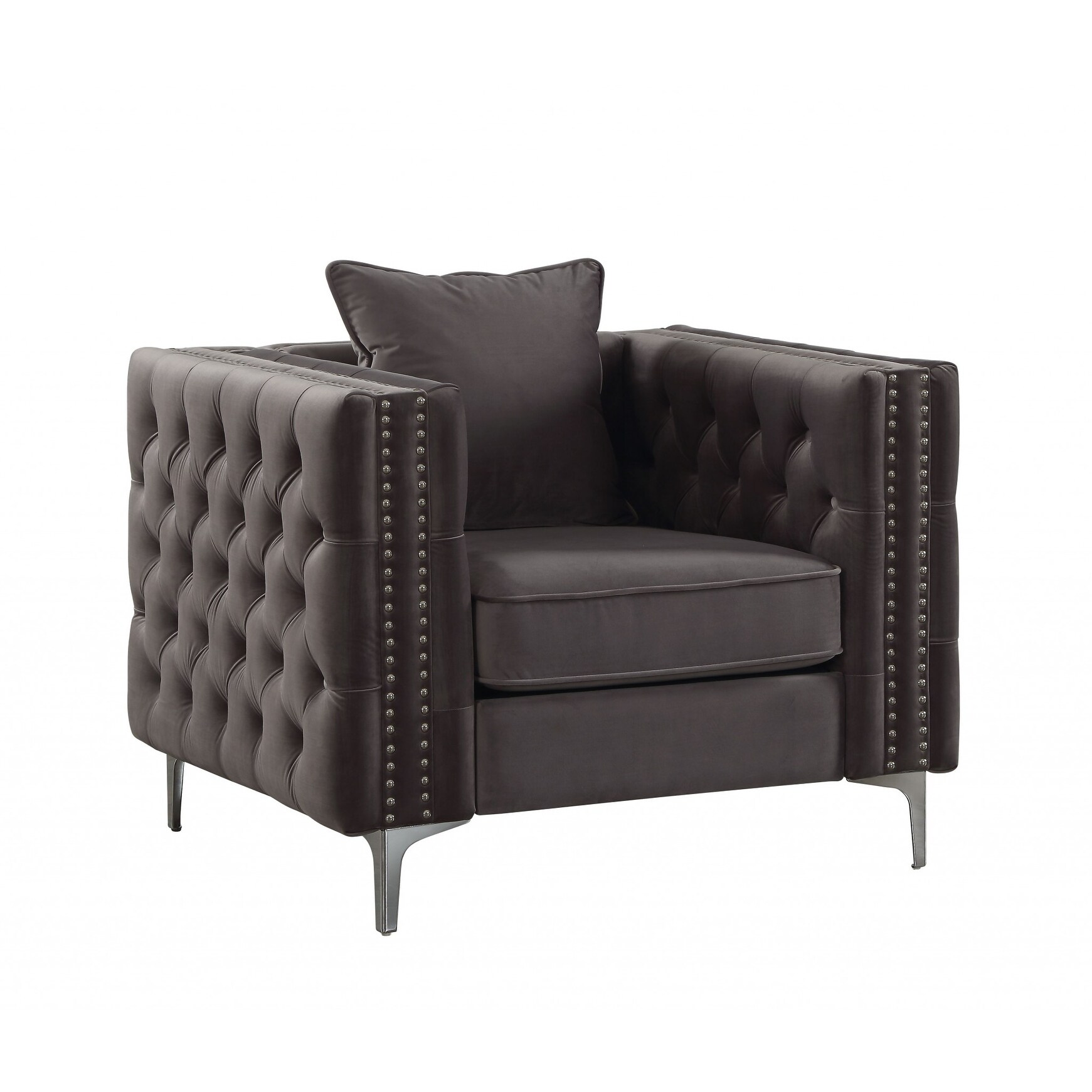 HomeRoots 40" Dark Slate Gray And Silver Velvet Tufted Chesterfield Chair - 40