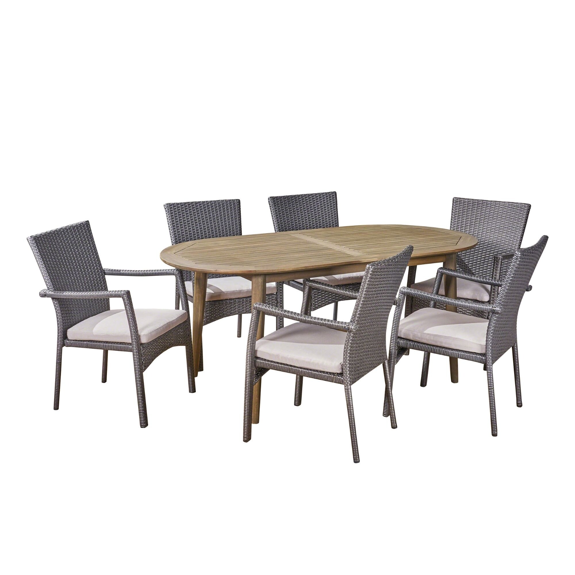 7pc Slate Gray Outdoor Furniture Patio Dining Set - Gray Cushions