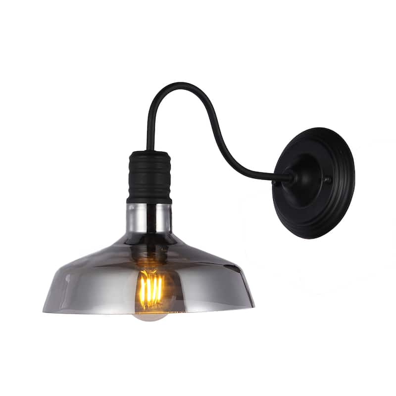 Salvin Black Metal 1-light Wall Sconce wtih 10-Inch Smoked Glass Shade includes Edison Bulb