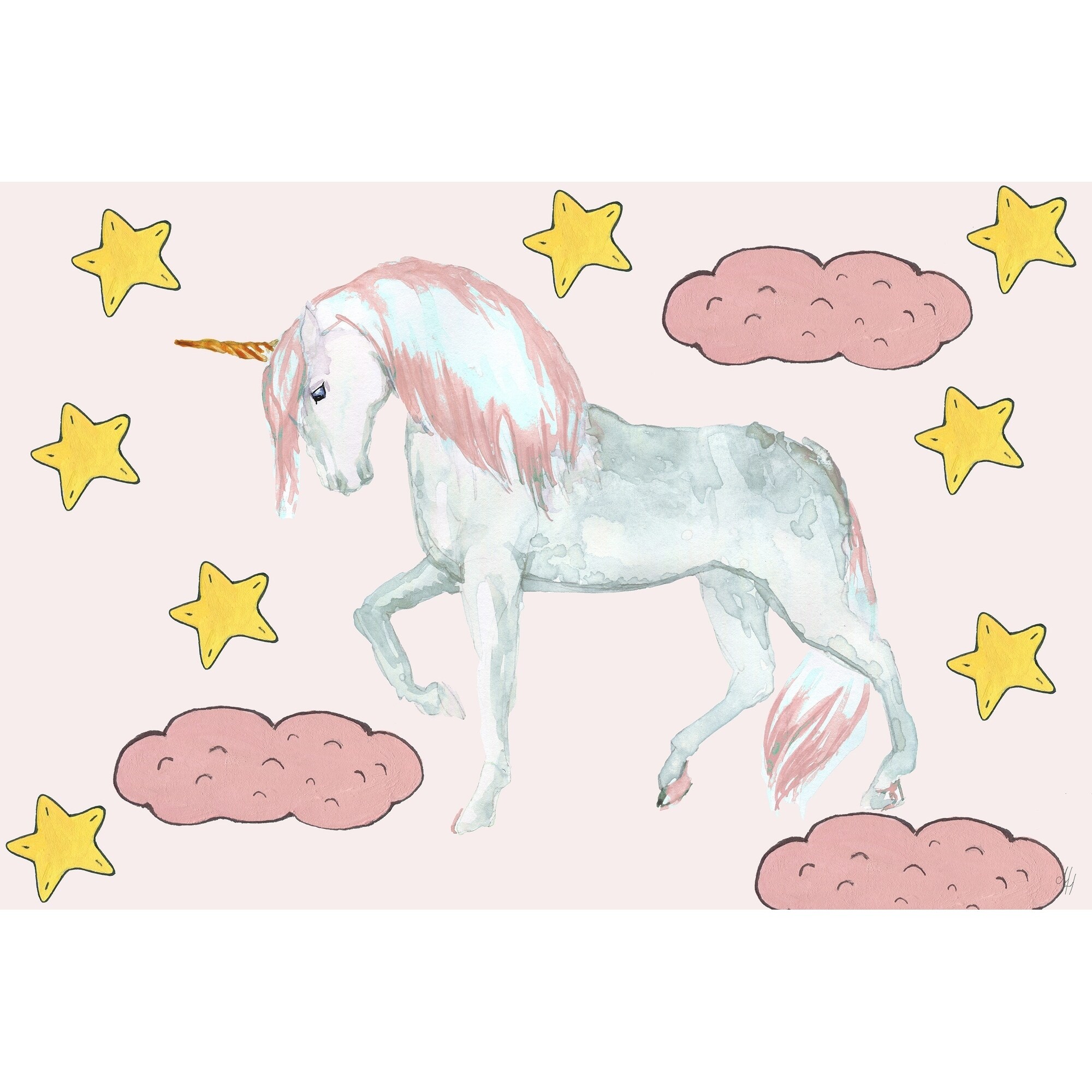 Marmont Hill - Handmade Starry Night Unicorn Print on Wrapped Canvas
