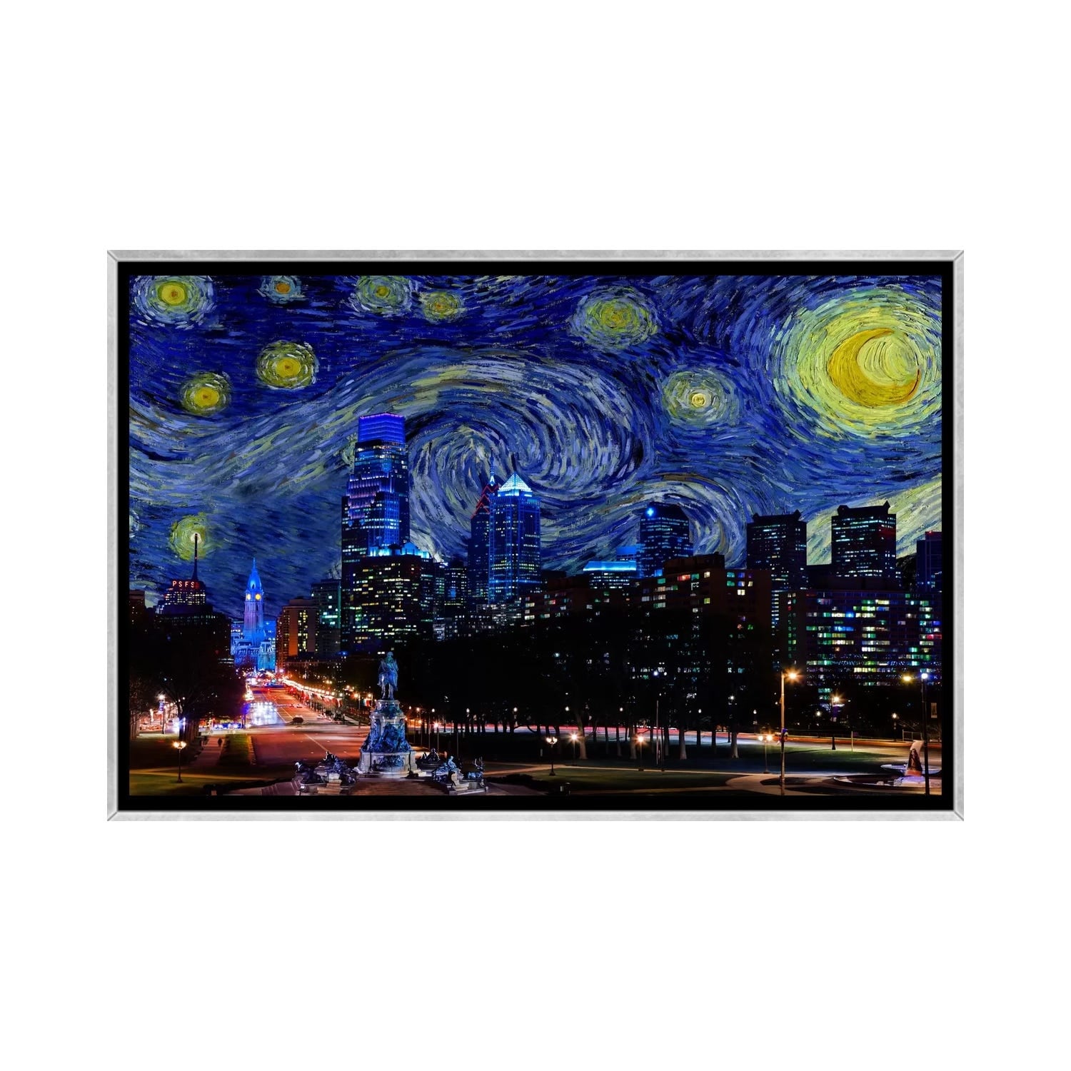 iCanvas "Philadelphia, Pennsylvania Starry Night Skyline" by 5by5collective Framed Canvas Print