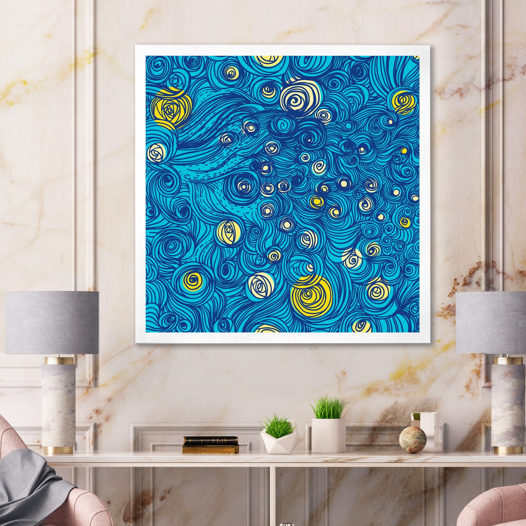 Designart "Starry Night Yellow And Blue" Modern Framed Art Print