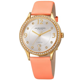 Burgi Women's Dazzling Diamond Rose-Tone Dial Pink Leather Strap Watch