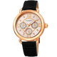 August Steiner Women's Multifunction Dual Time Swarovski Crystal Rose-Tone/ Brown Leather Strap