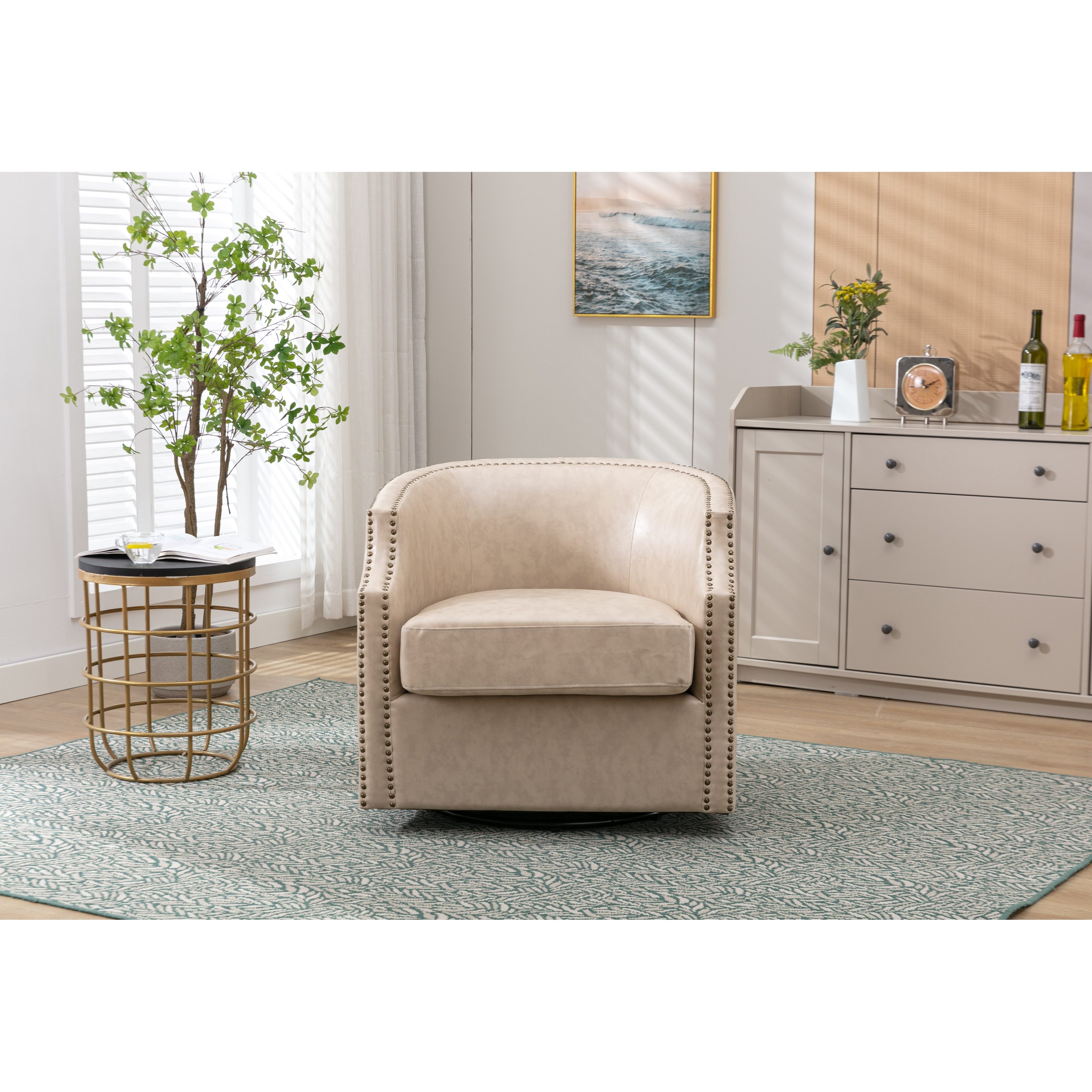 Swivel Chair Living Room Nailheads Accent Chairs, Beige