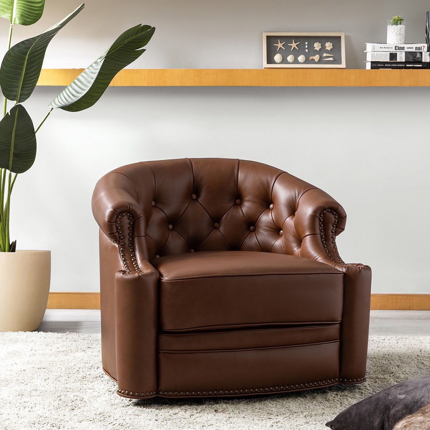 Felipe Modern Genuine Leather Swivel Chair With Tufted Back By HULALA HOME