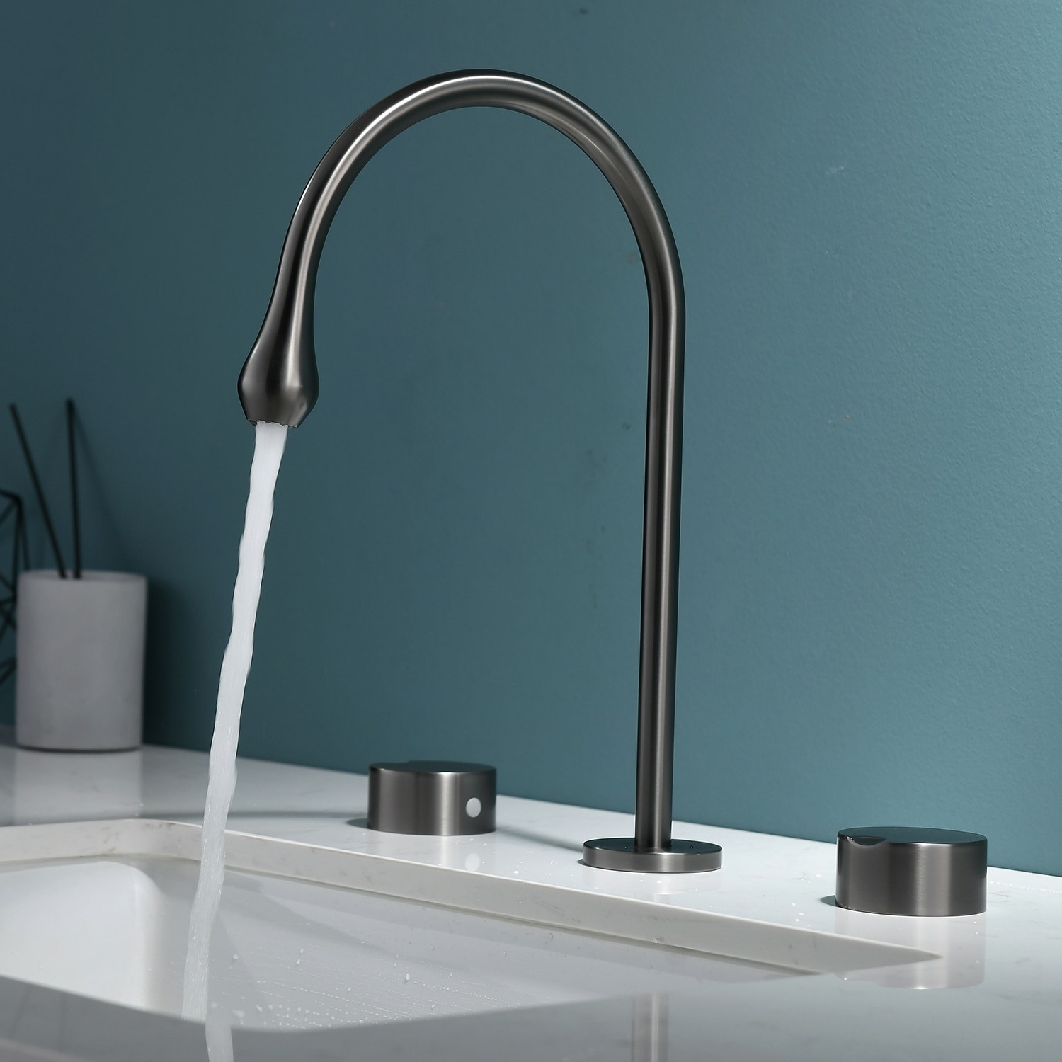 Widespread Bathroom Sink Faucet 3-Hole 2-Handle Countertop Mixer Taps