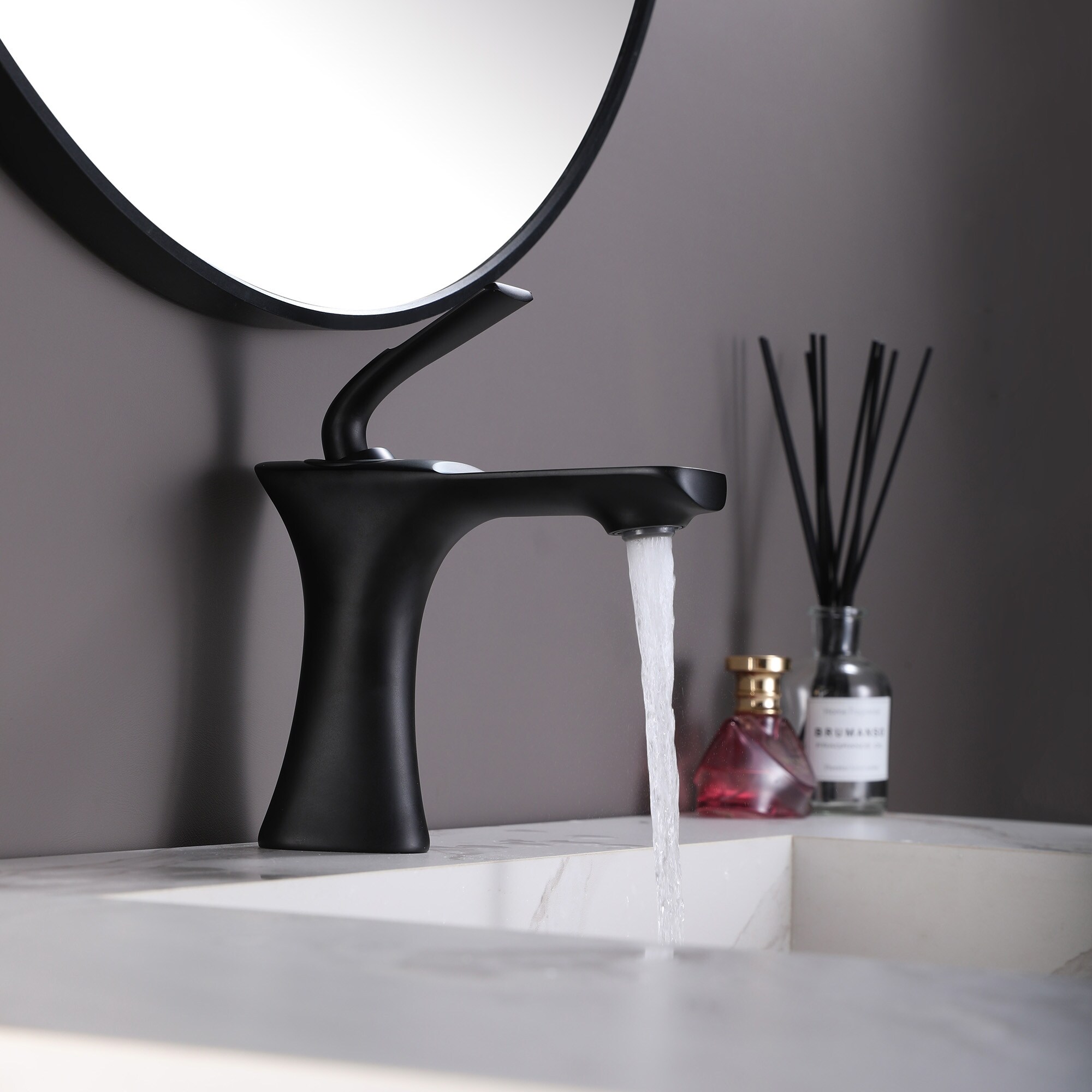 Wall Mount Bathroom Sink Faucet Waterfall Modern Matte Black Bathroom Basin Vanity Faucets Single Handle Taps With Valve