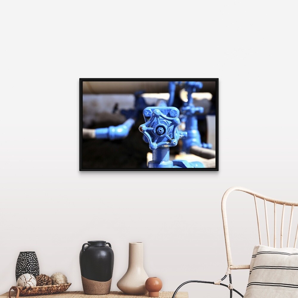 "Water tap connected to valve" Black Float Frame Canvas Art