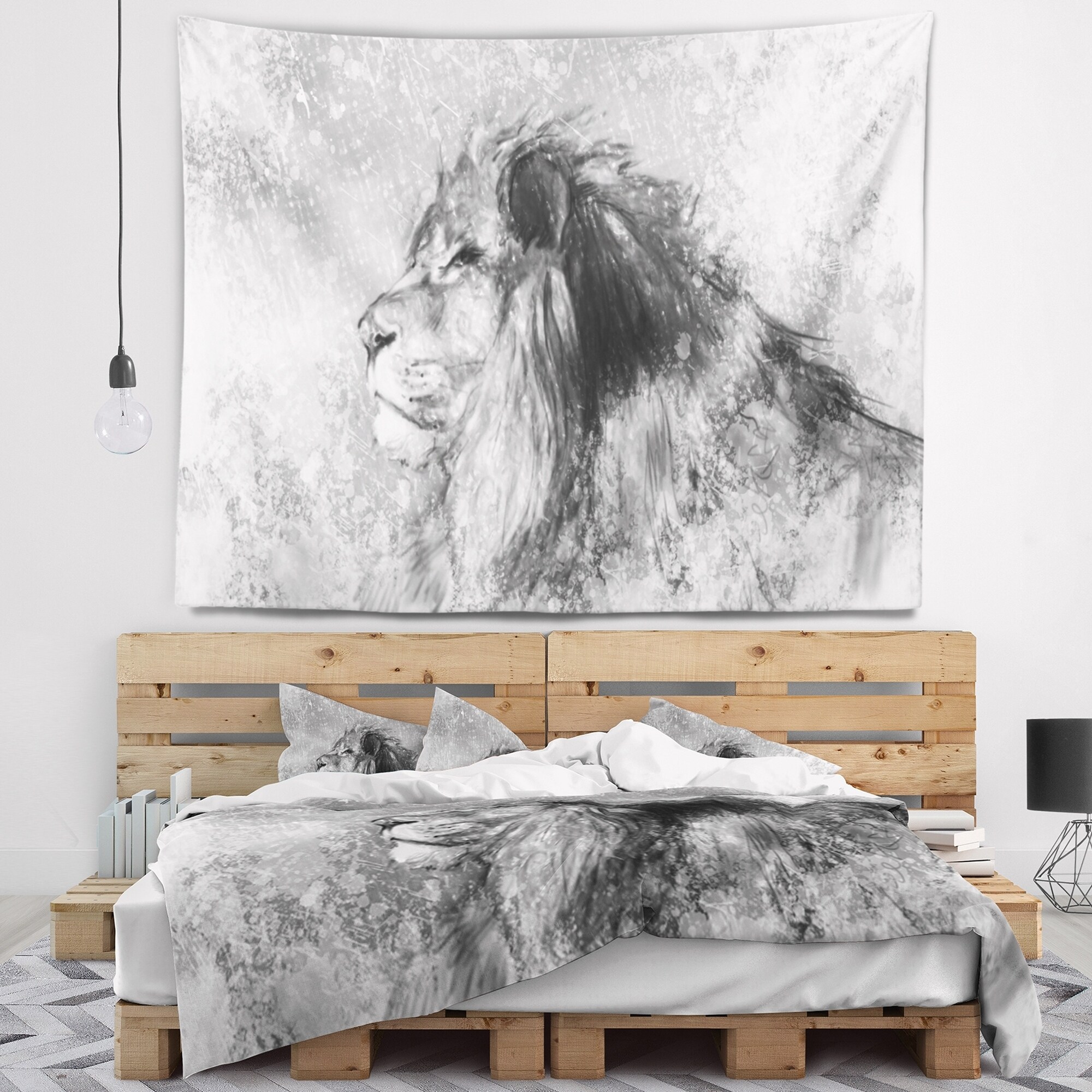 Designart 'Lion Tattoo Illustration Art' Abstract Wall Tapestry