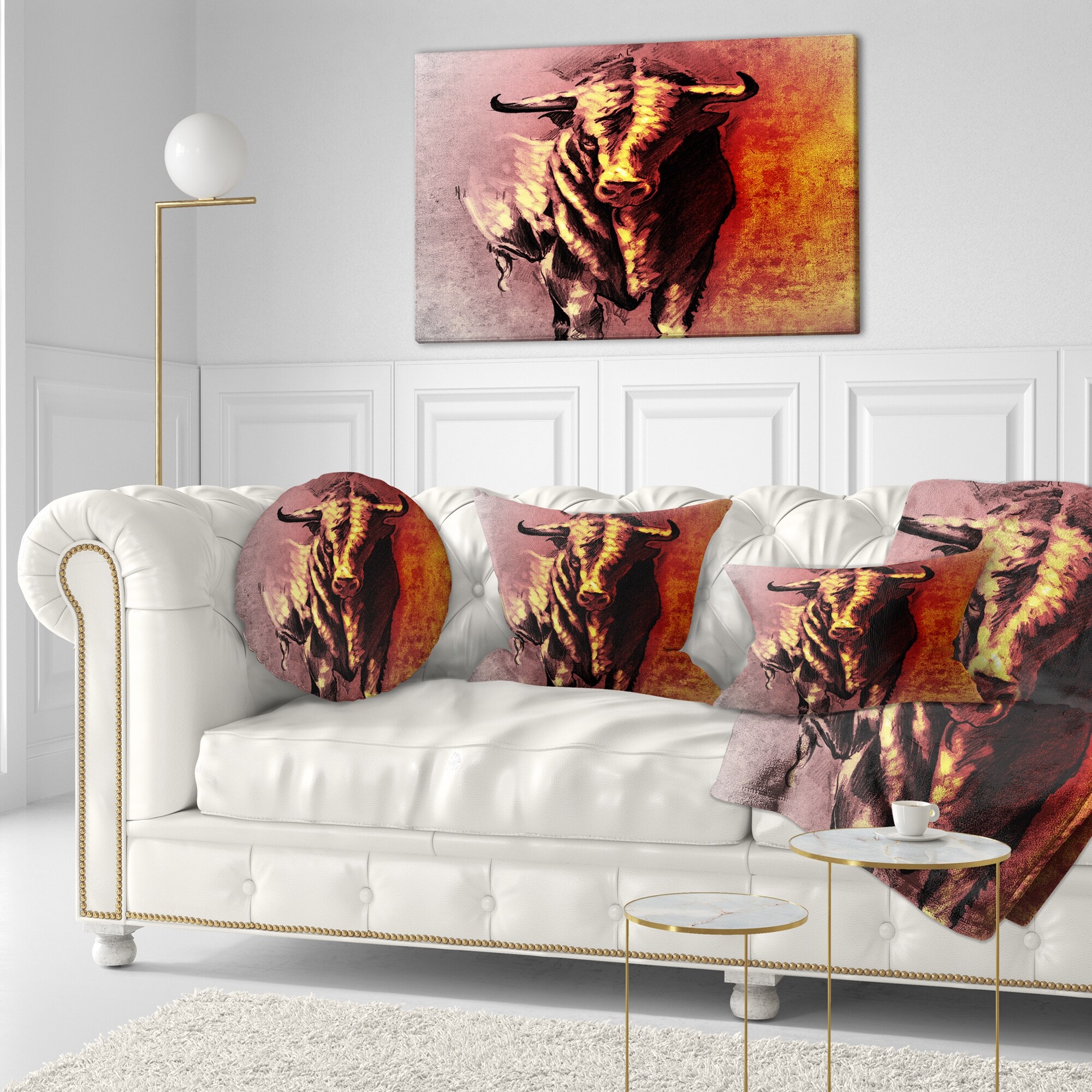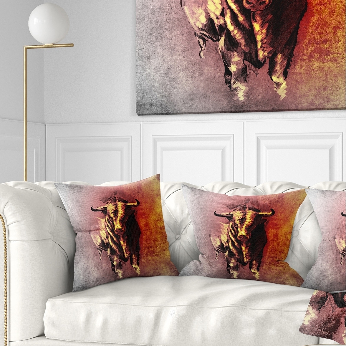 Designart 'Spanish Bull Tattoo Sketch' Abstract Throw Pillow