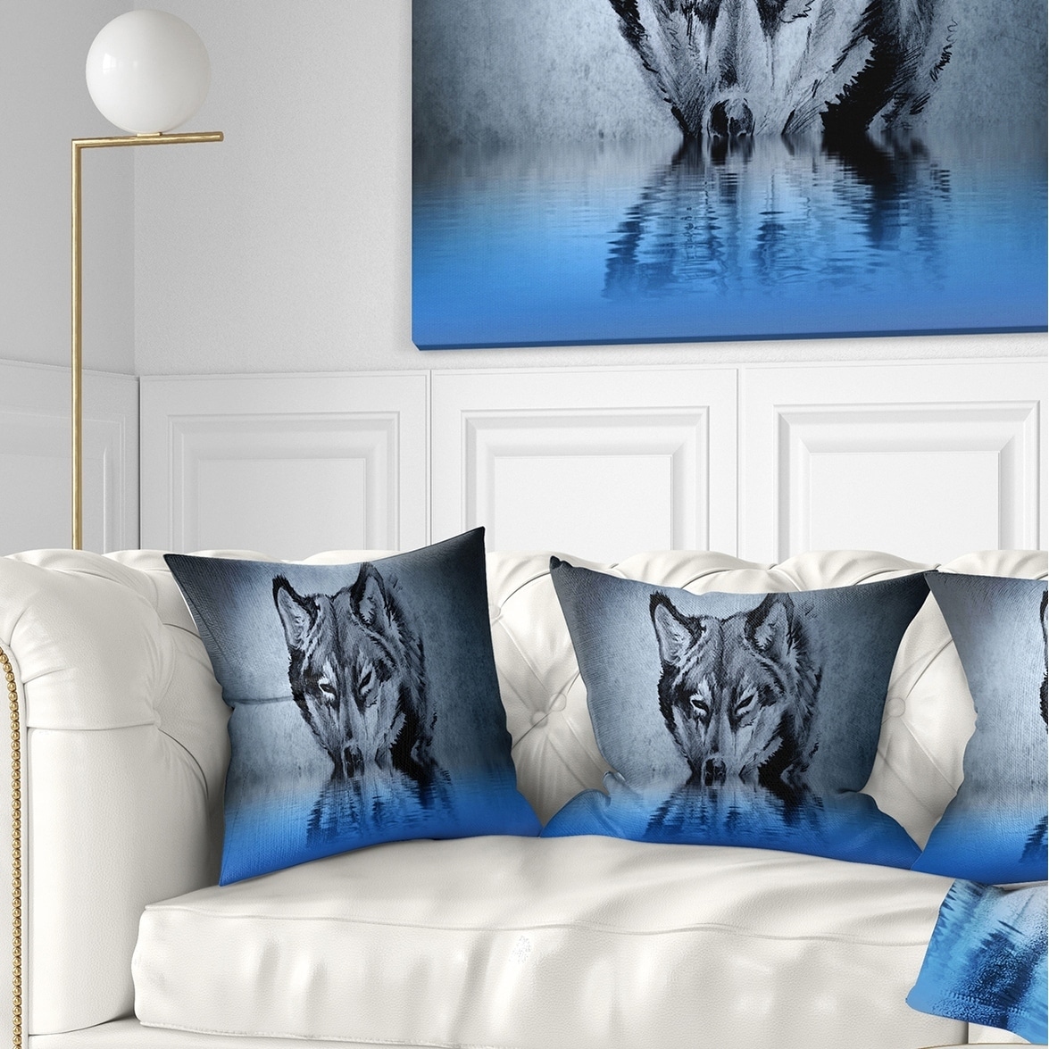 Designart 'Wolf Head with Water Reflections Tattoo' Abstract Throw Pillow