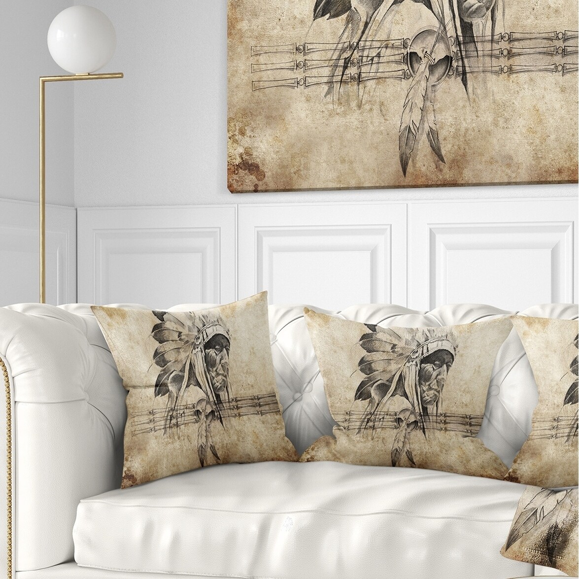 Designart 'Vintage Style Indian Head Tattoo' Abstract Throw Pillow