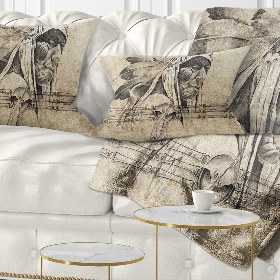 Designart 'American Indian Warrior Tattoo Sketch' Abstract Throw Pillow