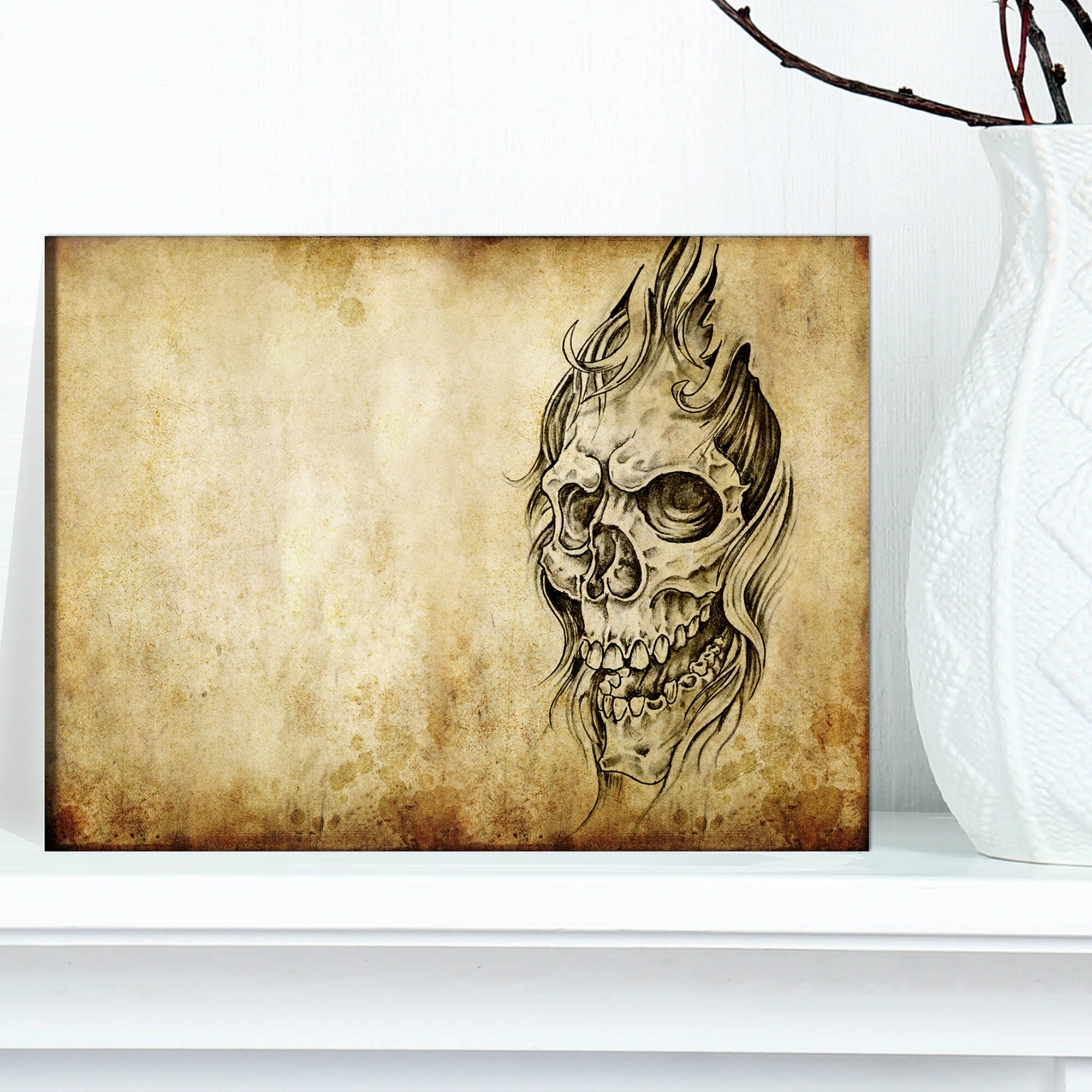Designart "Death Tattoo Art" Abstract Portrait Canvas Print