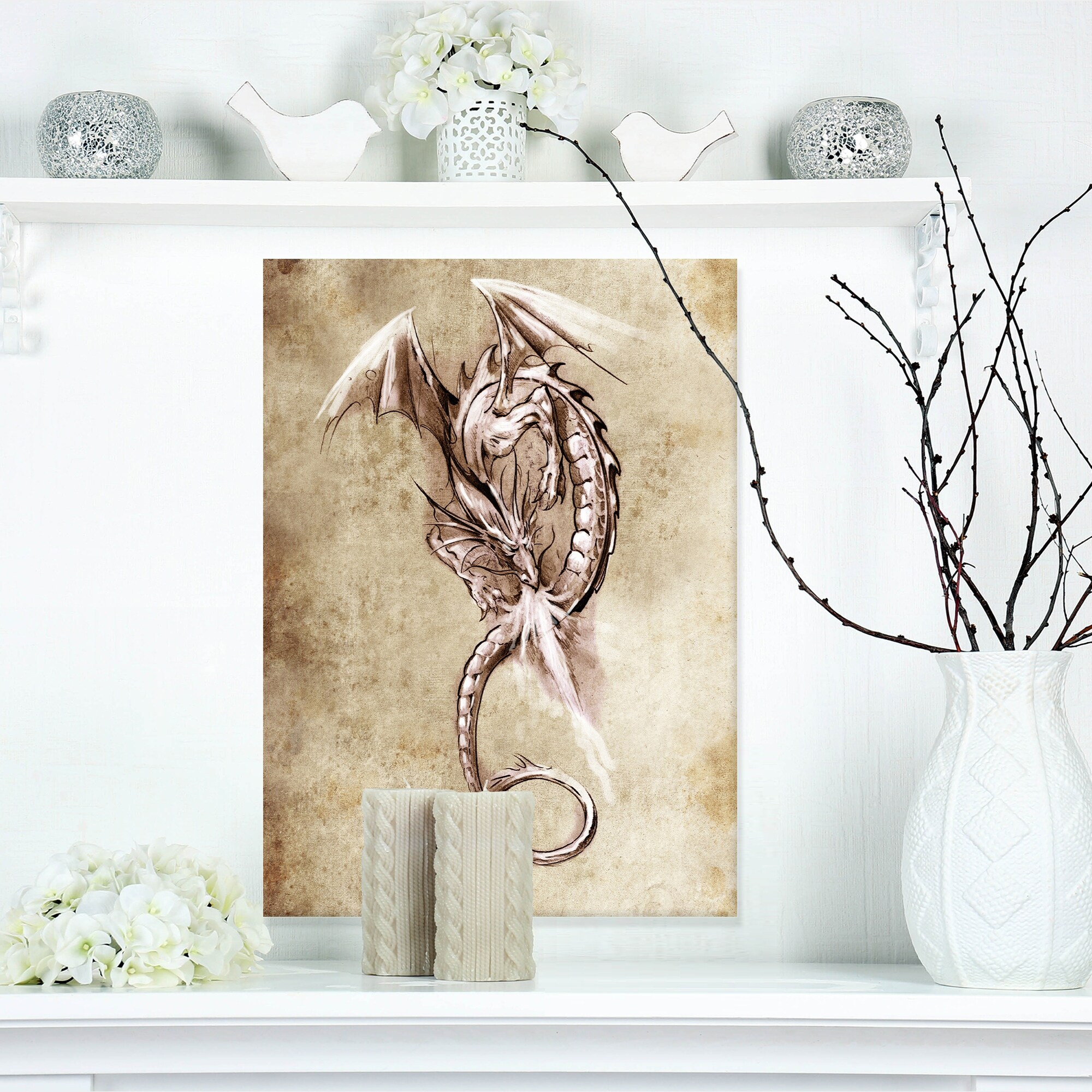 Designart "Fantasy Dragon Tattoo Sketch" Abstract Print on Canvas