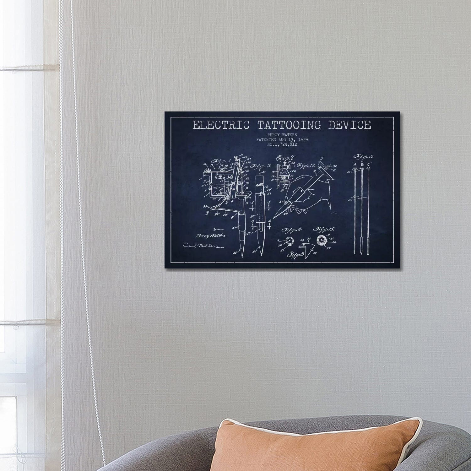 iCanvas "Tattoo Device Navy Blue Patent Blueprint" by Aged Pixel Canvas Print