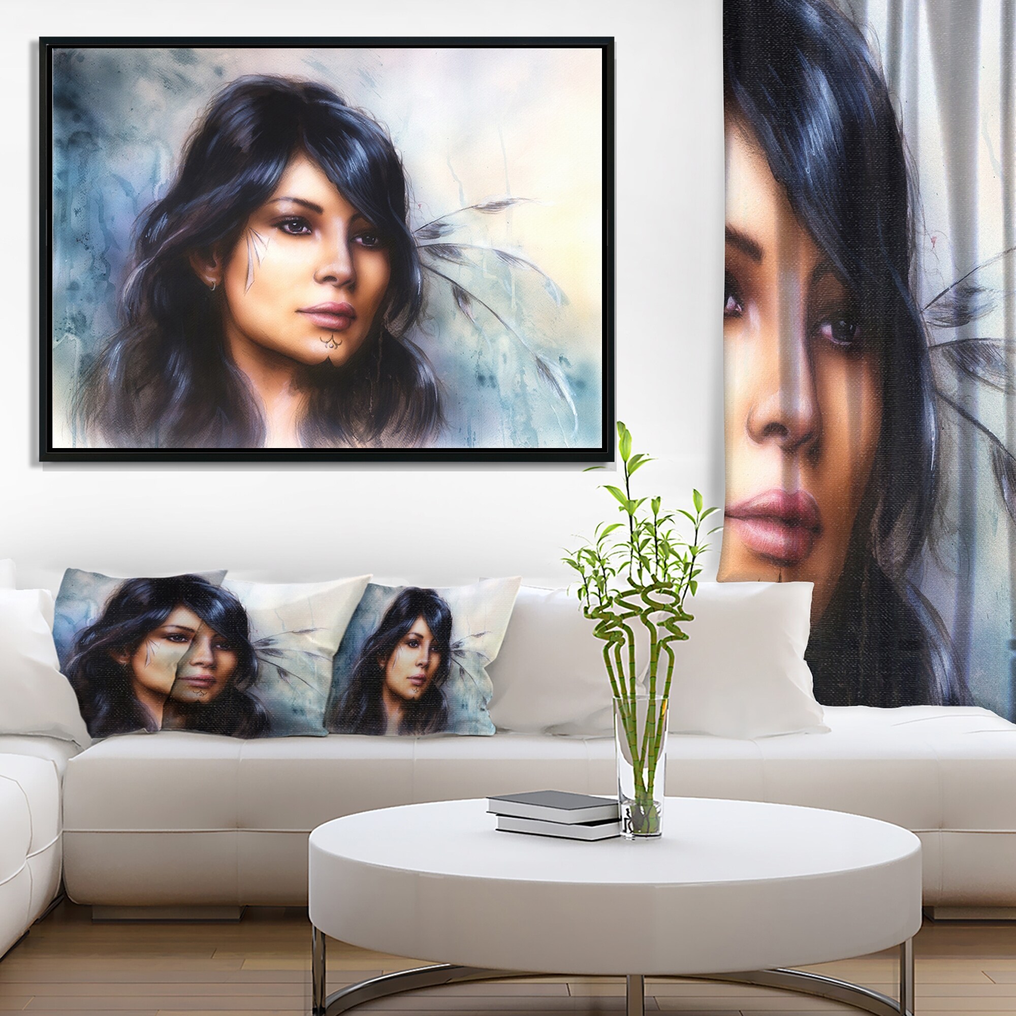 Designart "Indian Woman with Ornament Tattoo" Portrait Framed Canvas Art Print