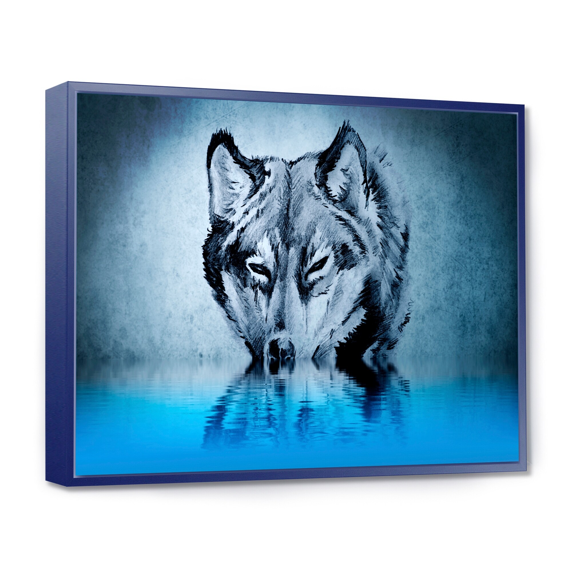 Designart "Wolf Head with Water Reflections Tattoo" Abstract Print on Framed Canvas