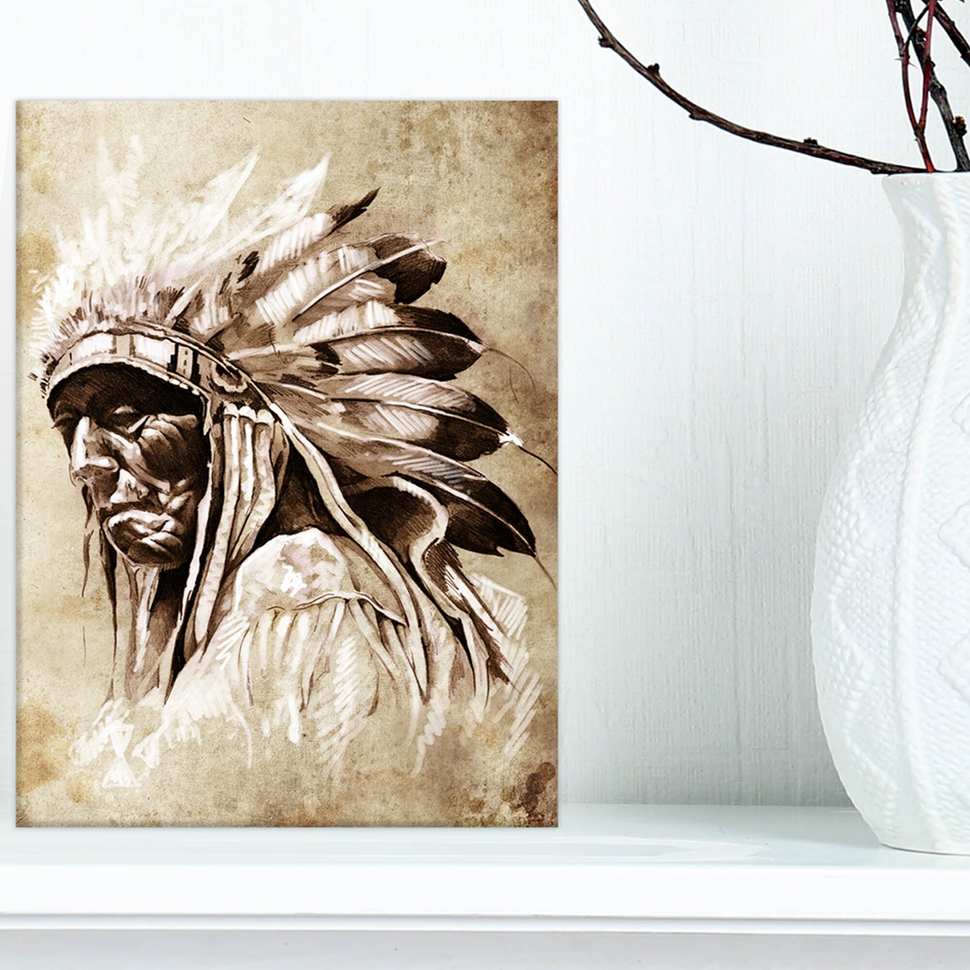 Designart "Vintage Style Indian Head Tattoo" Abstract Print on Canvas